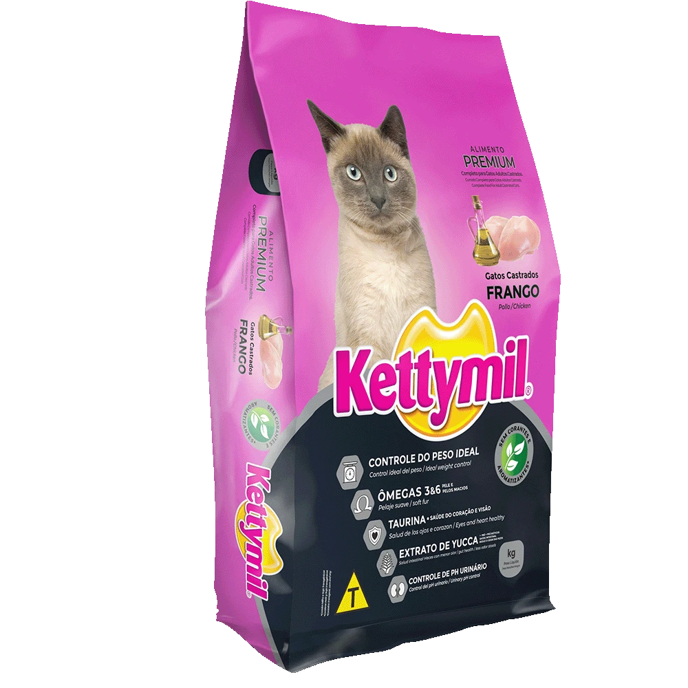 🐱 Ração KettyMil para Gatos Adultos Castrados Sabor Frango 30% Proteínas - 25kg