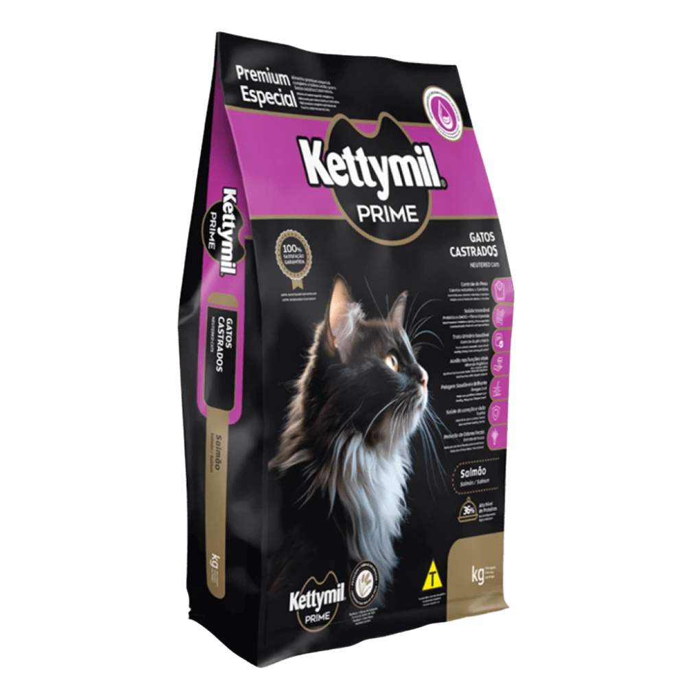 😺 Ração KettyMil Prime para Gatos Castrados Sabor Salmão 10,1kg – 36% Proteínas