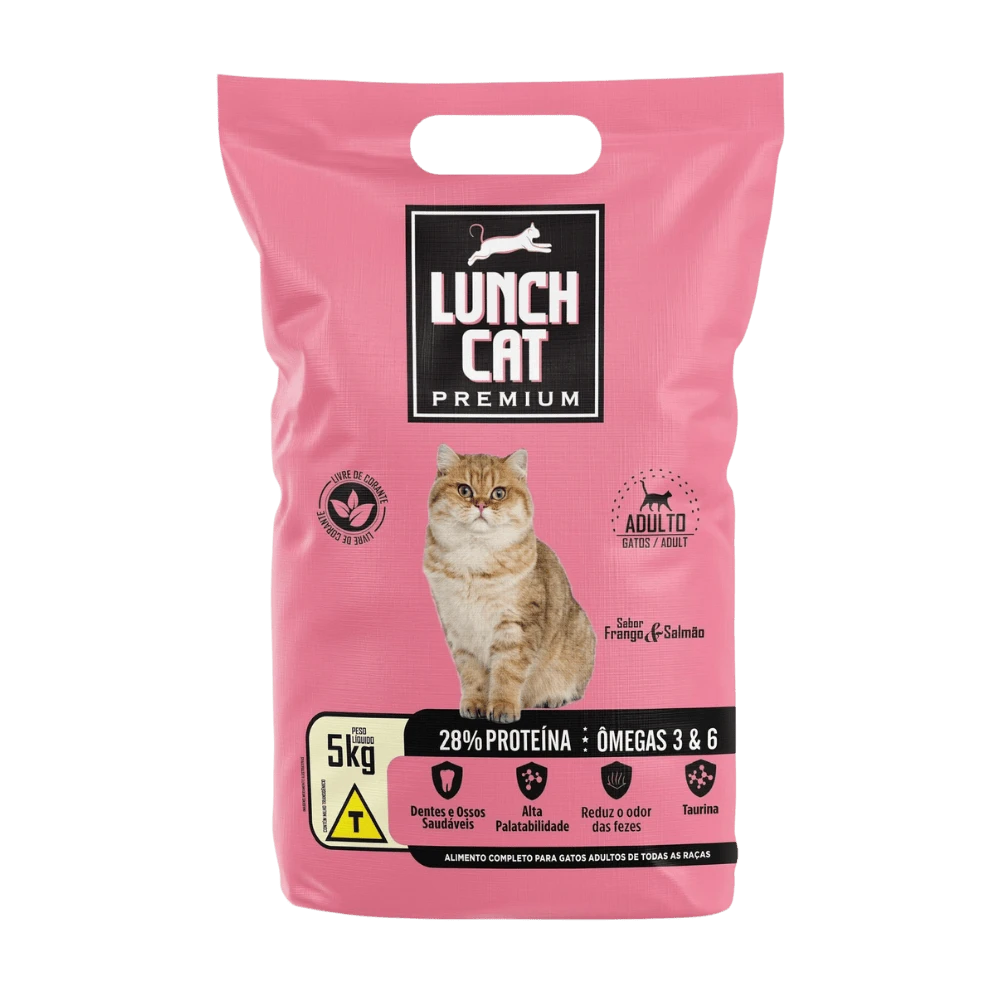 😺 Ração para Gato Adulto Lunch Cat Premium Natural Frango e Salmão 26% Proteína – 5kg