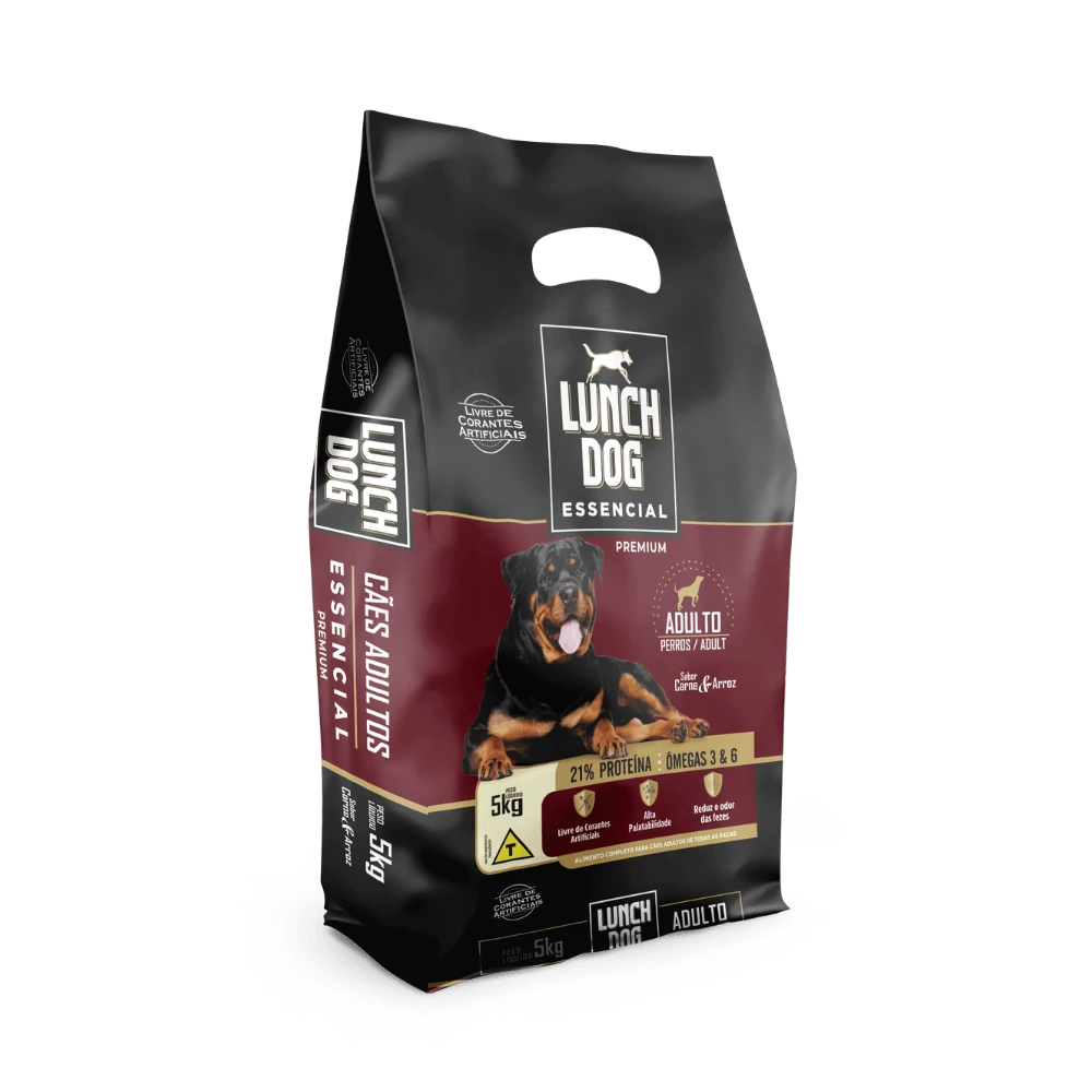 🐶 Ração Lunch Dog Essencial para Cães Adultos Carne 21% Proteína – 5kg
