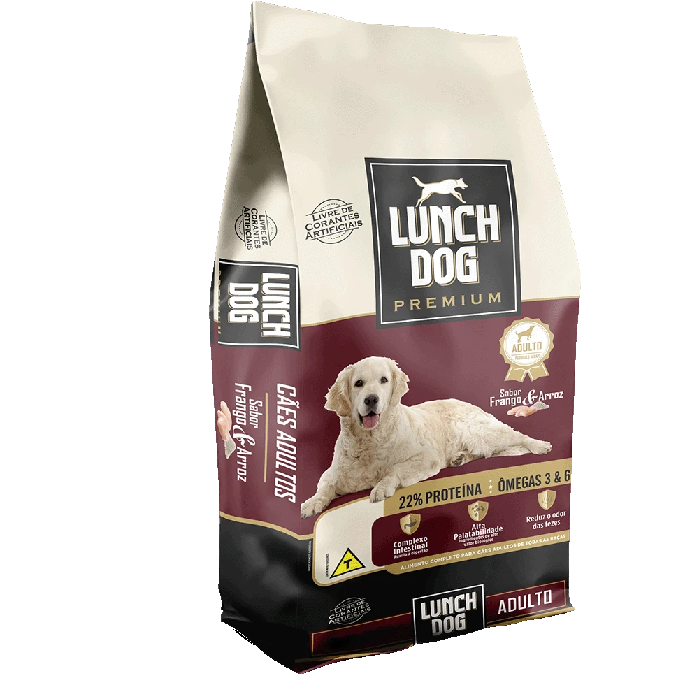 🐶 Ração Lunch Dog Premium para Cães Adultos Sabor Frango & Arroz 22% Proteínas - 15kg