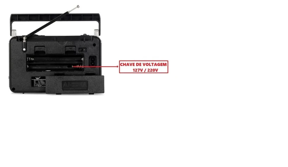 CAIXA DE SOM PORTÁTIL COM RÁDIO AM/FM ANALÓGICO, FM ESTEREO, ENTRADA USB E ENTRADA PARA CARTÃO SD, ENTRADA AUXILIAR, BIVOLT
