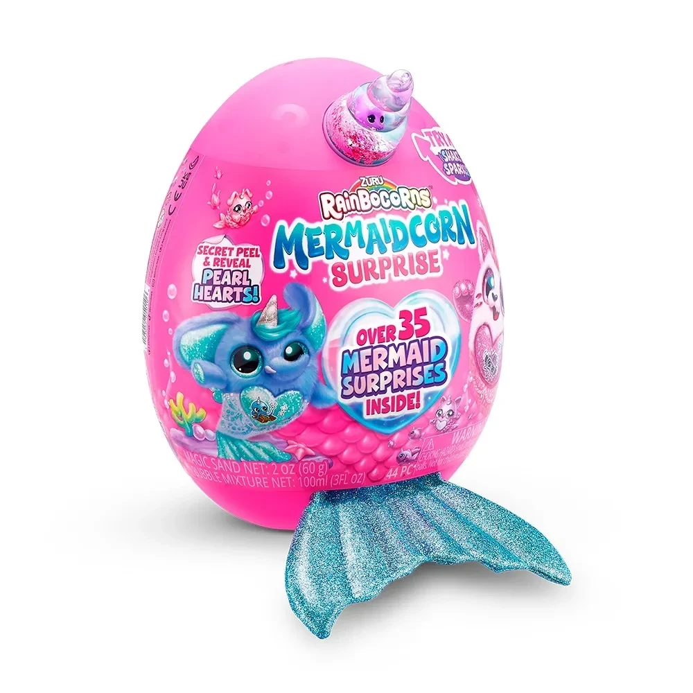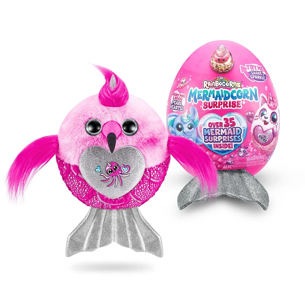 Conteúdo da embalagem: 1 pelúcia Mermaidcorn, 1 ovo grande, 1 boo-boocorn no globo de água, 15 surpresas colecionáveis