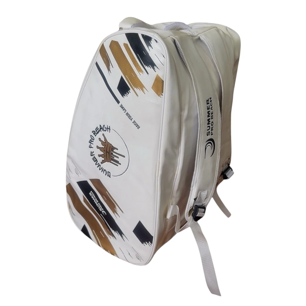 Raqueteira de Beach Tennis Summer Pro com Mochila Impermeável Organize seus equipamentos de beach tennis com estilo e proteção. A Raqueteira Summer Pro une design moderno e funcionalidade, perfeita para jogadores que buscam praticidade e durabilidade. Confeccionada em material impermeável, protege suas raquetes e pertences contra umidade e chuva, garantindo segurança mesmo em dias de praia ou treino ao ar livre. Principais benefícios: - Compartimento amplo para até 2 raquetes, facilitando o transporte - Mochila integrada com alças ajustáveis, proporcionando conforto no uso diário - Material resistente e impermeável para máxima proteção contra água e areia - Design moderno com estampas exclusivas que refletem o espírito do beach tennis - Espaço extra para acessórios pessoais, como roupas e garrafa de água Ideal para atletas que valorizam qualidade e praticidade, essa raqueteira é a escolha certa para elevar sua experiência nas quadras. Aproveite a praticidade de carregar tudo em um único equipamento e esteja sempre pronto para o jogo.