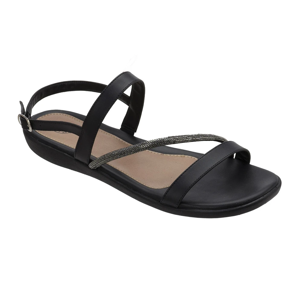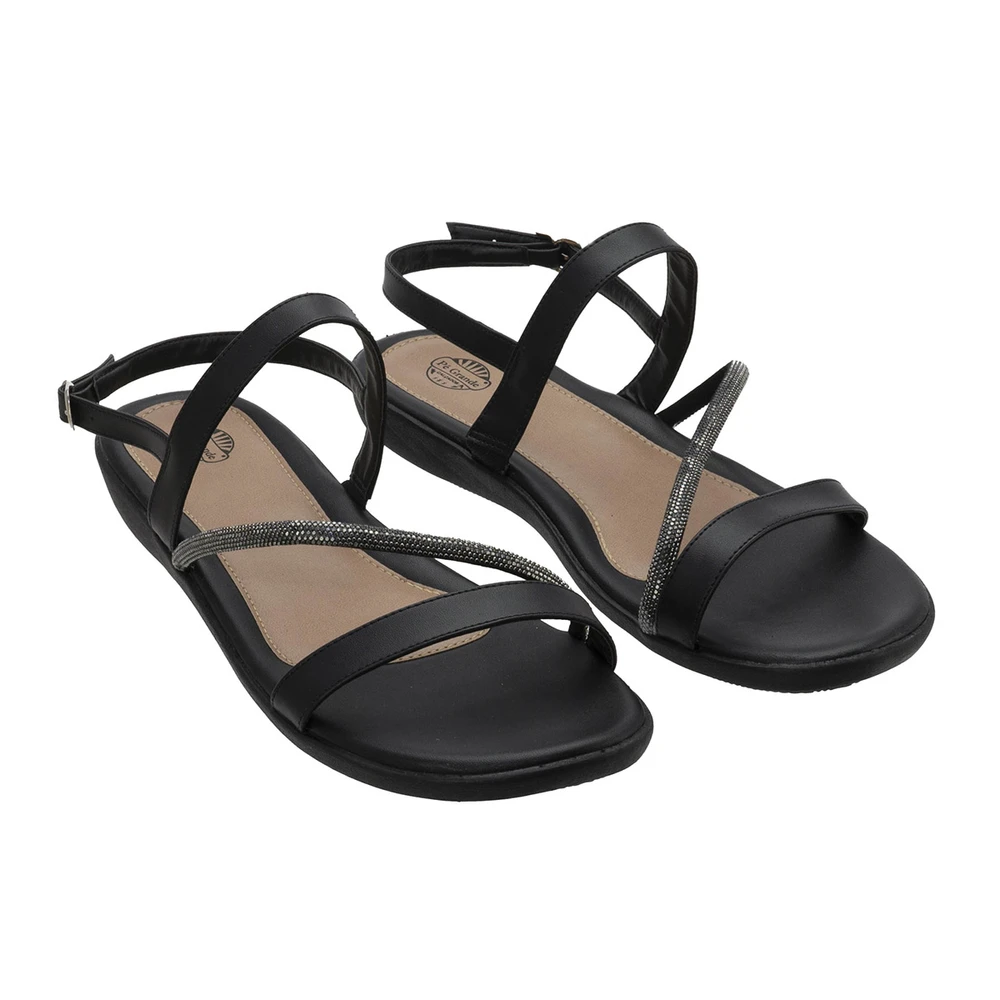 Rasteirinha em couro e solado de borracha antiderrapante.
