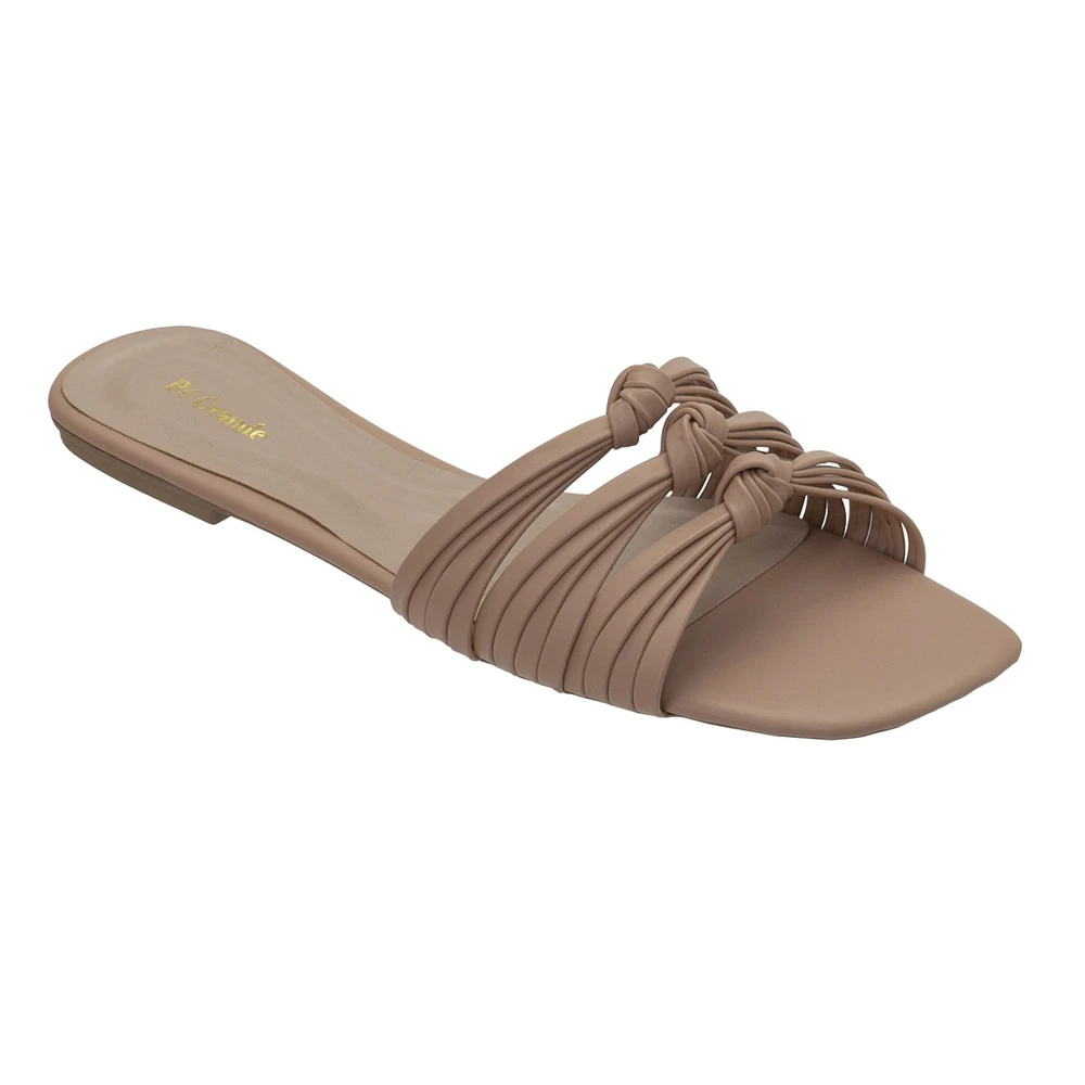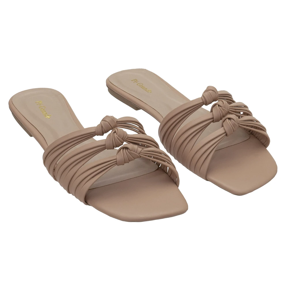 Rasteira em couro ecológico com solado em borracha antiderrapante.