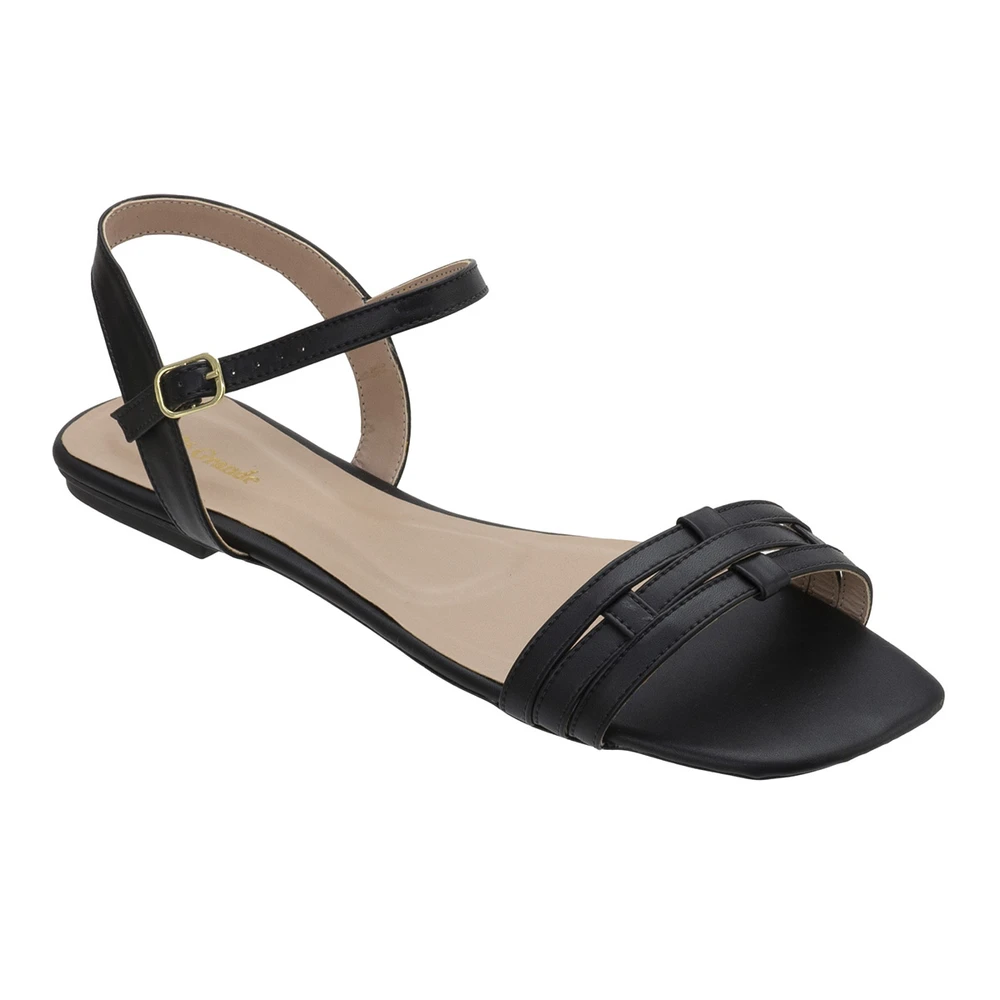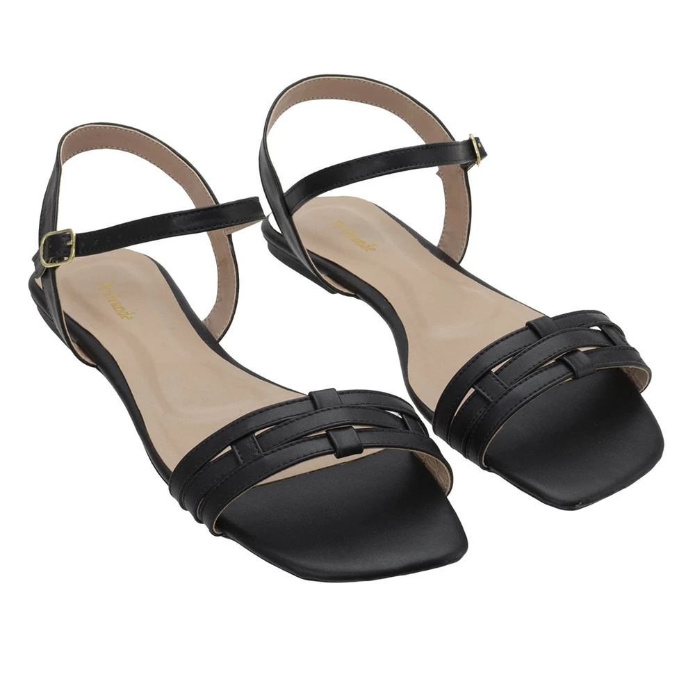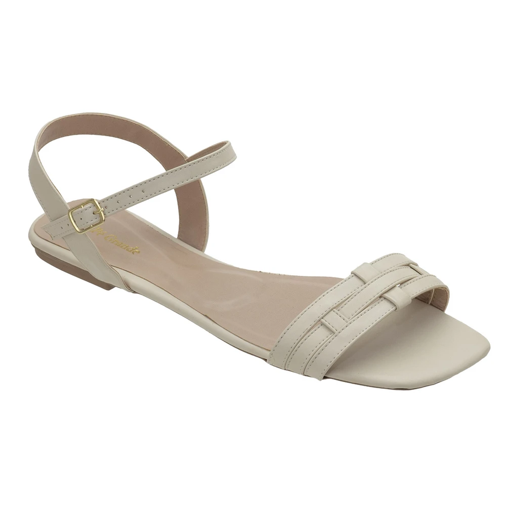 Rasteira em couro ecológico com solado em borracha antiderrapante.
