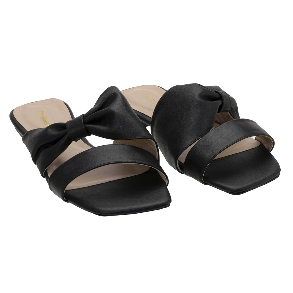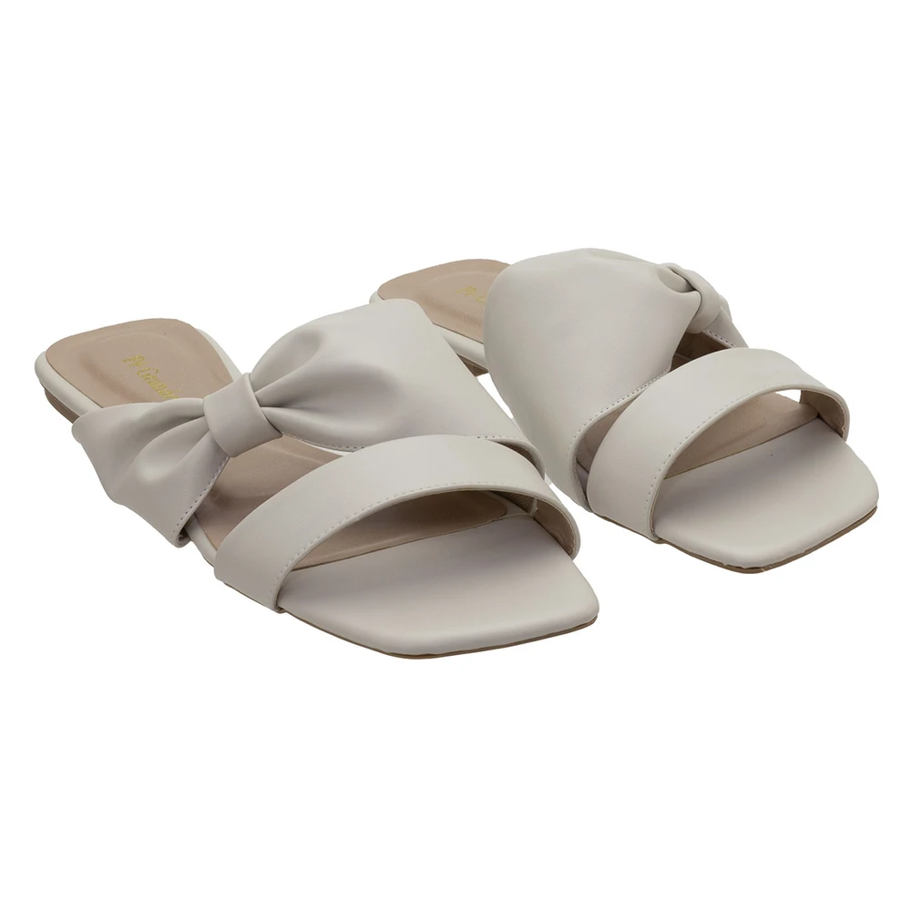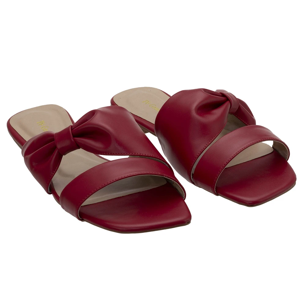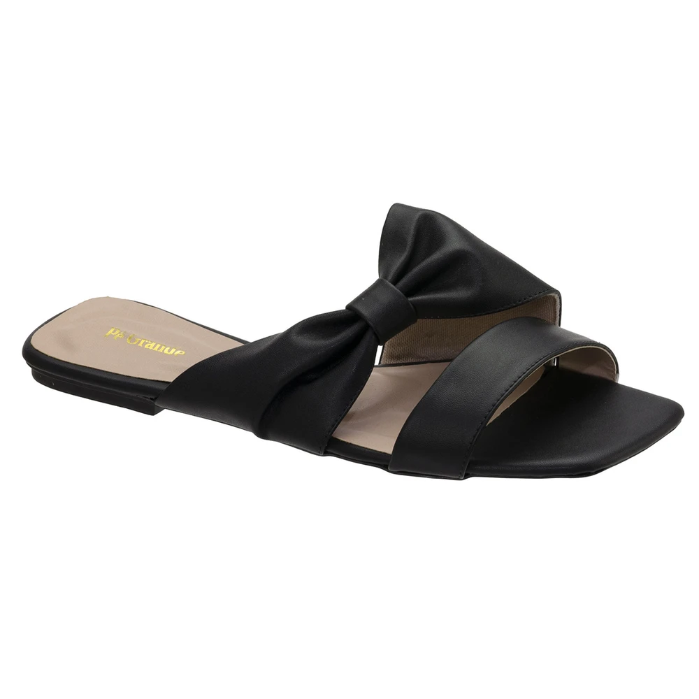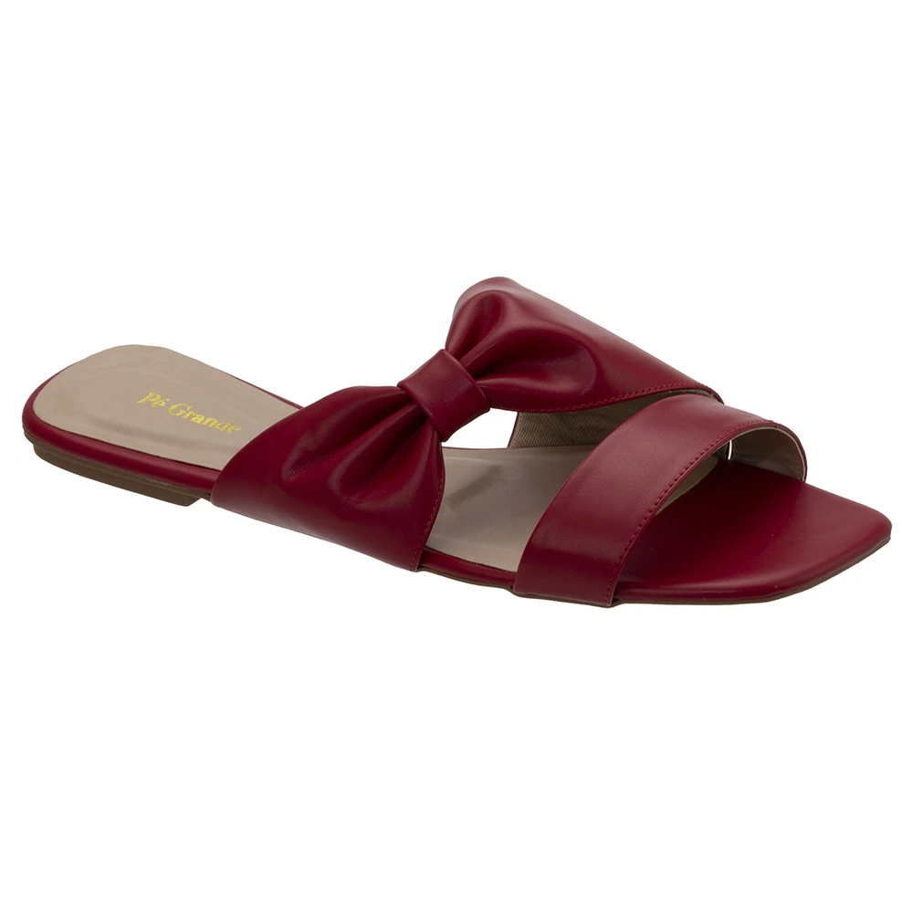Rasteira em couro ecológico com solado em borracha antiderrapante.