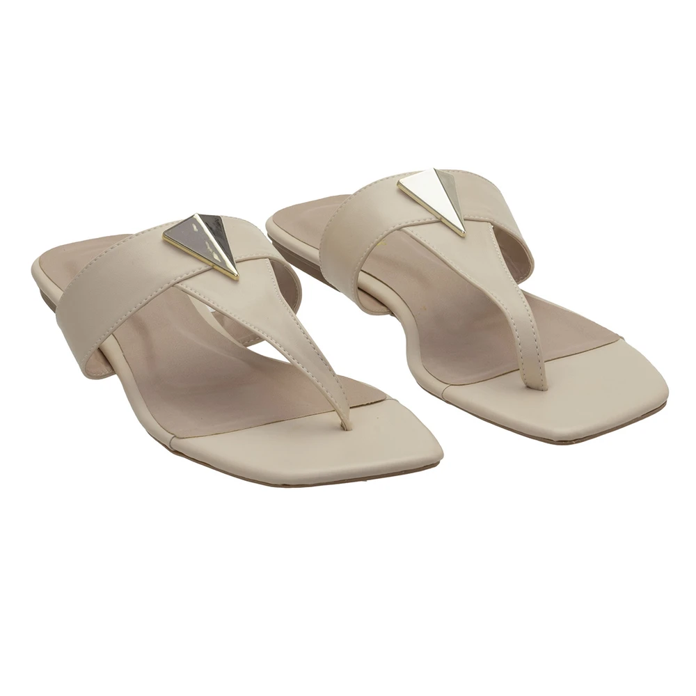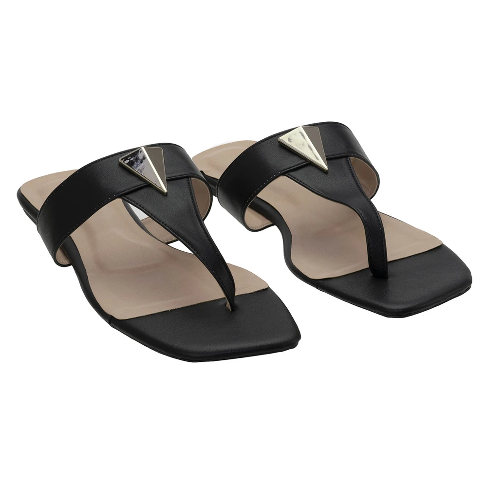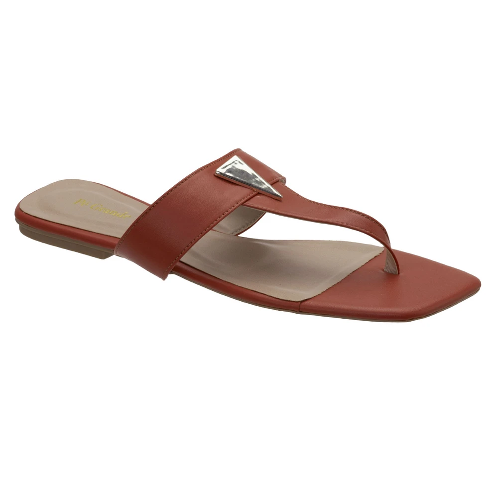 Rasteira em couro ecológico com solado em borracha antiderrapante.