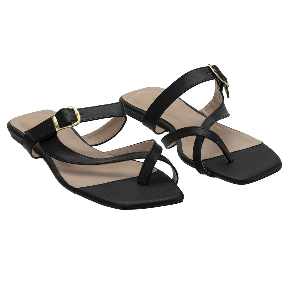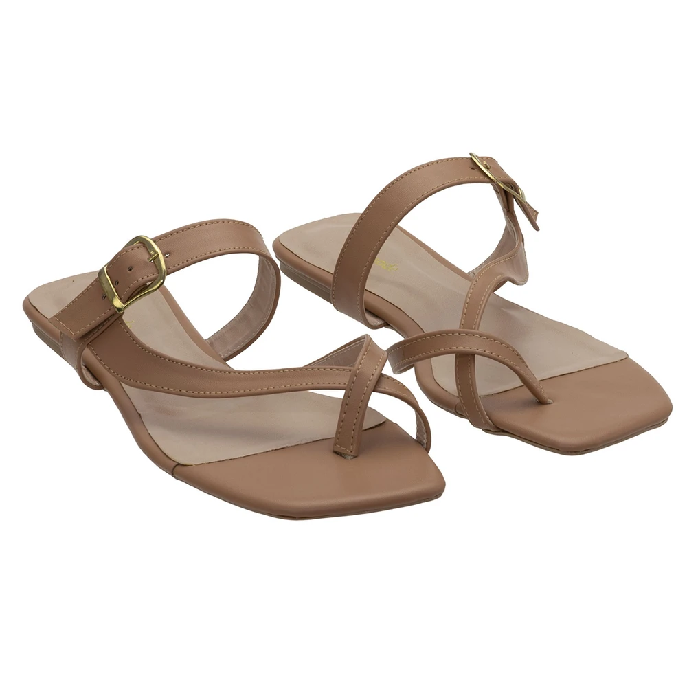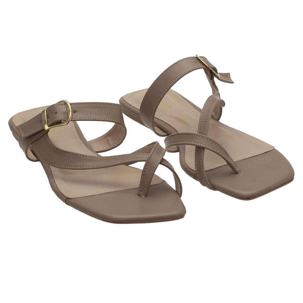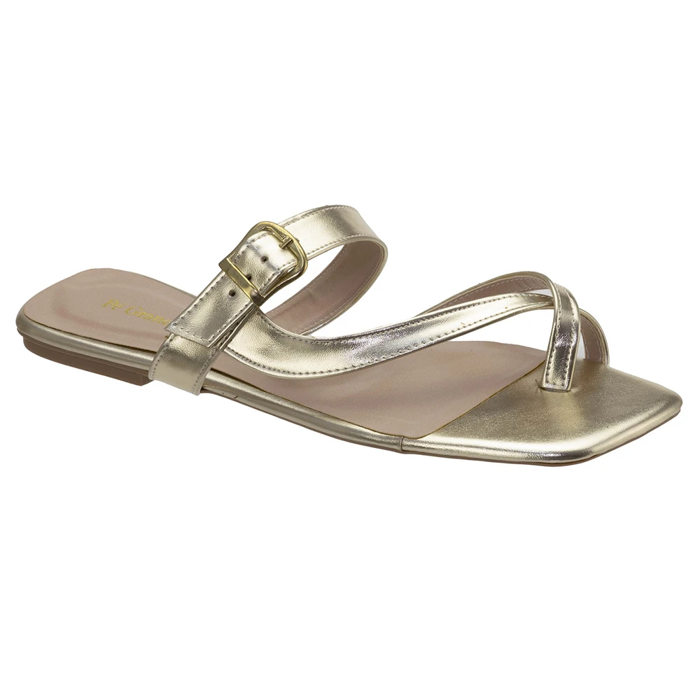 Rasteira em couro ecológico com solado em borracha antiderrapante.