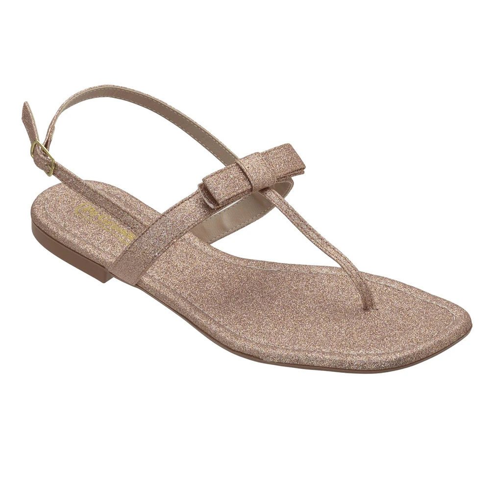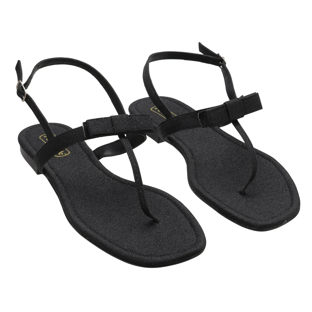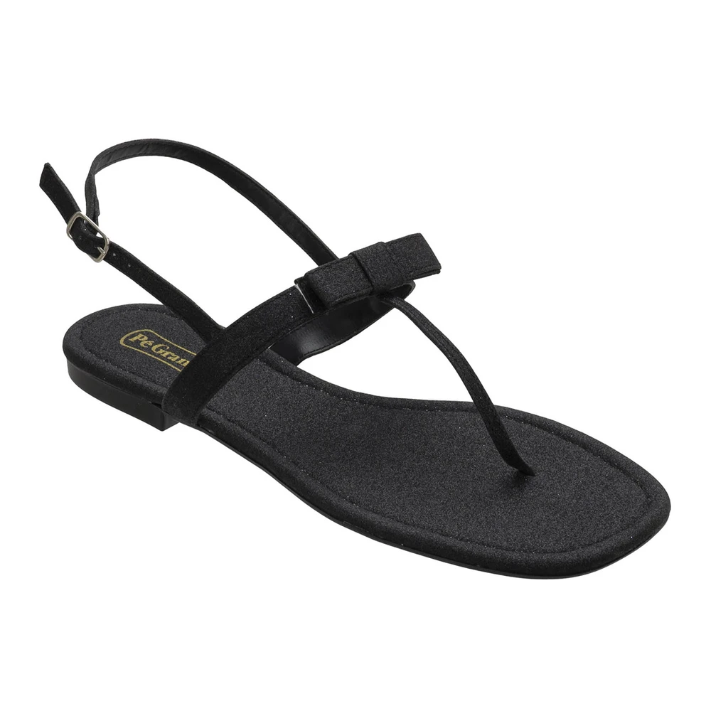 Rasteira em couro ecológico e tecido com solado em borracha antiderrapante.