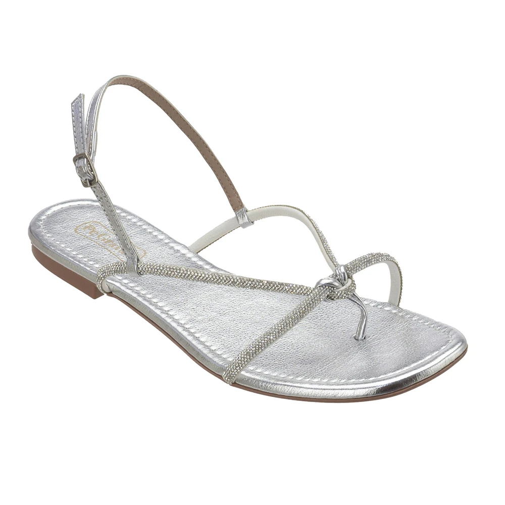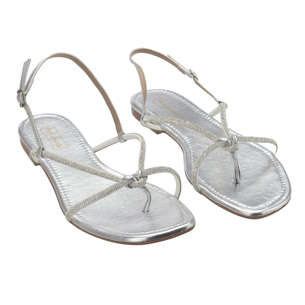 Rasteira em couro ecológico e tecido com solado em borracha antiderrapante.