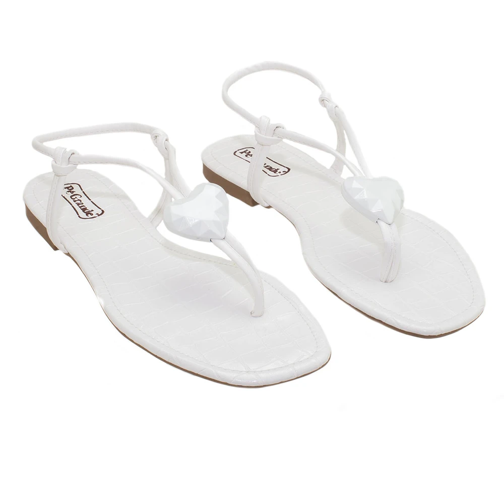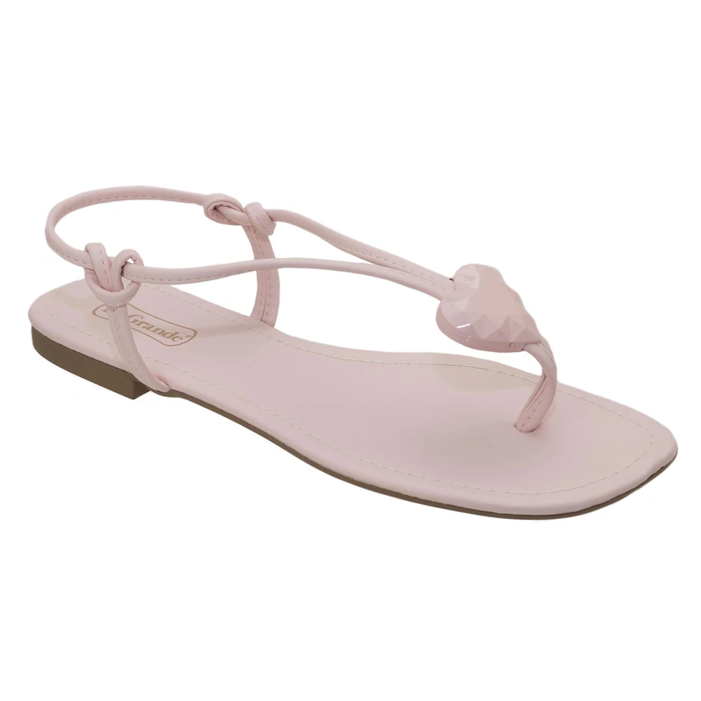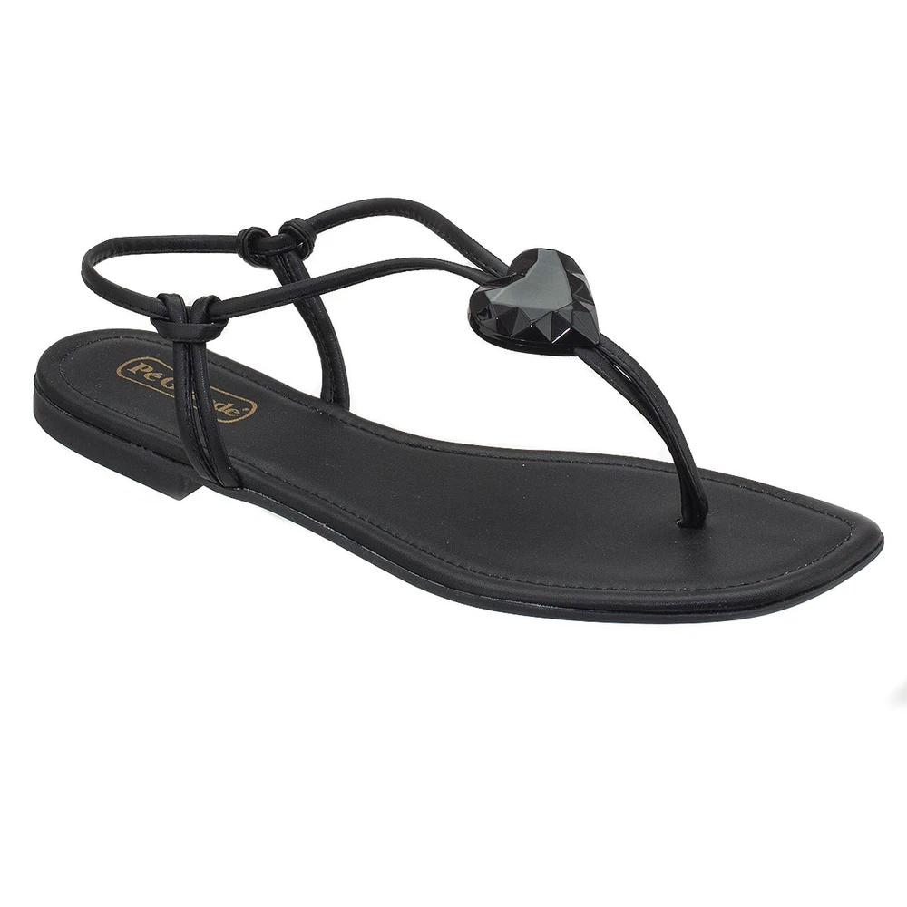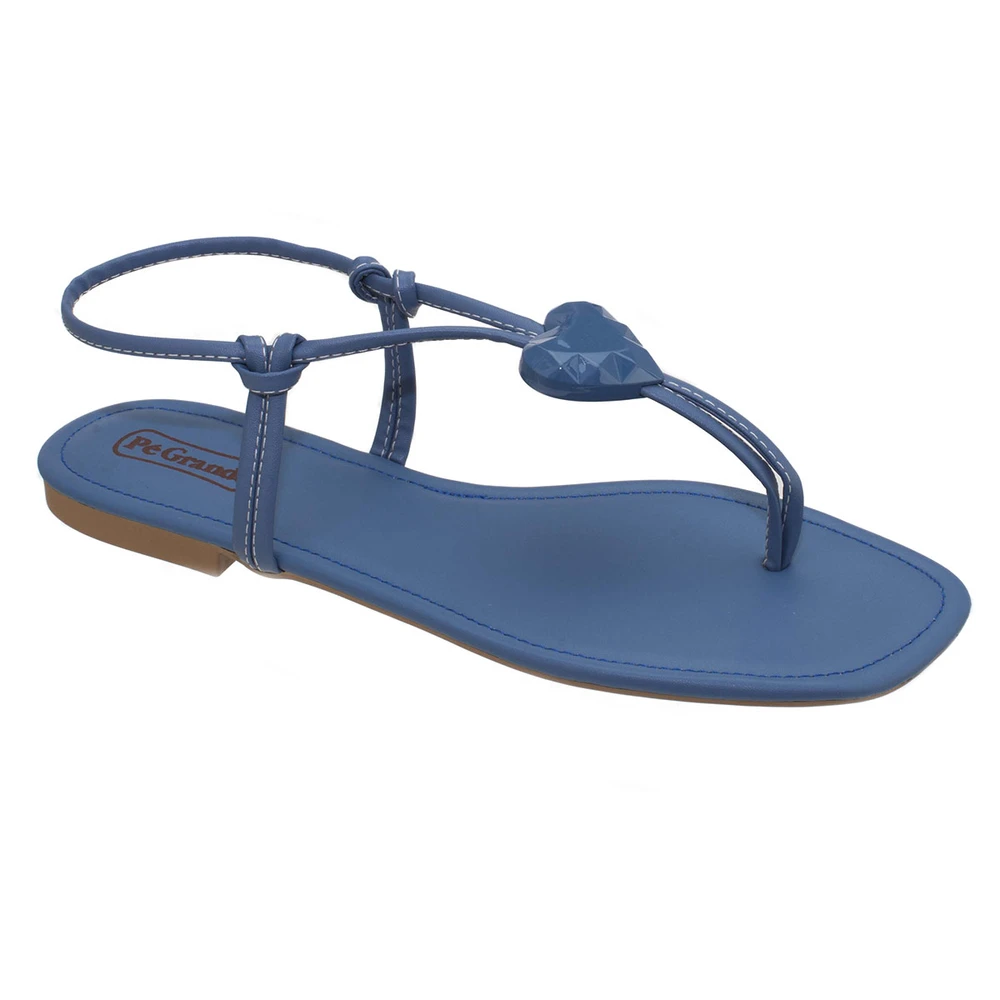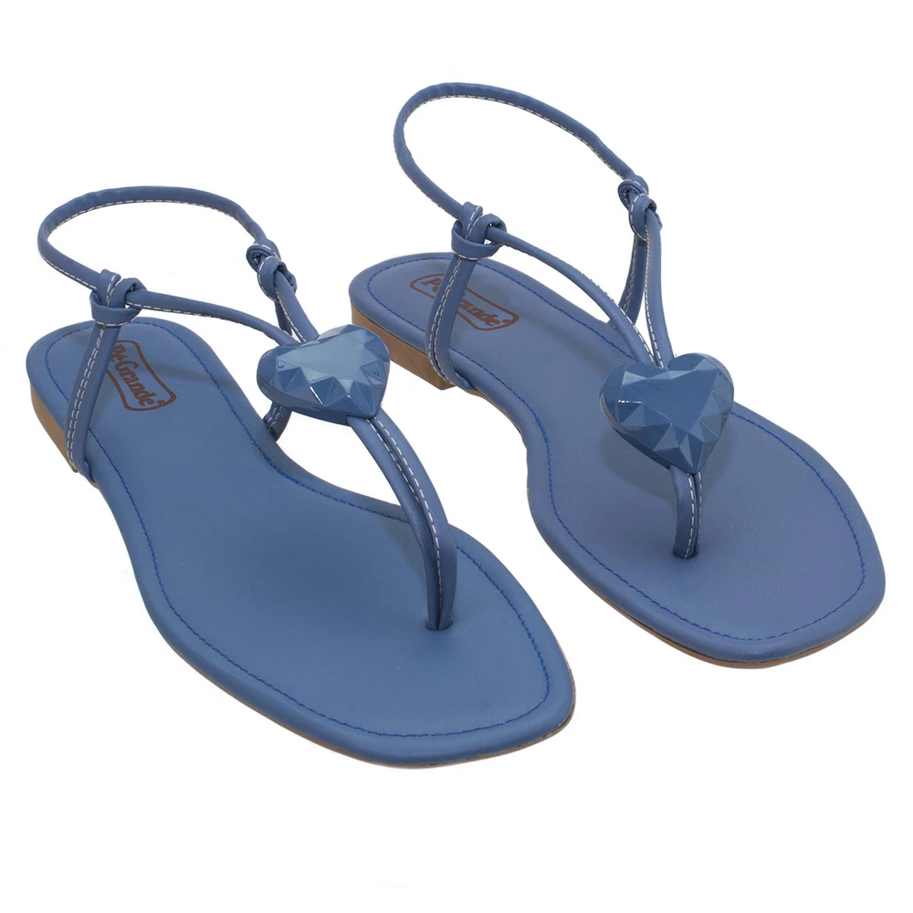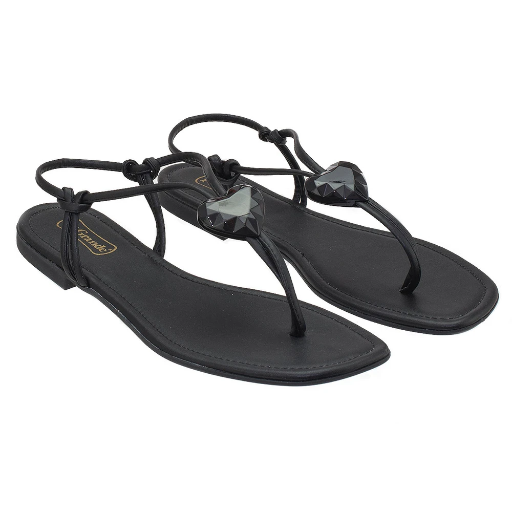 Rasteira em couro ecológico e tecido com solado em borracha antiderrapante.