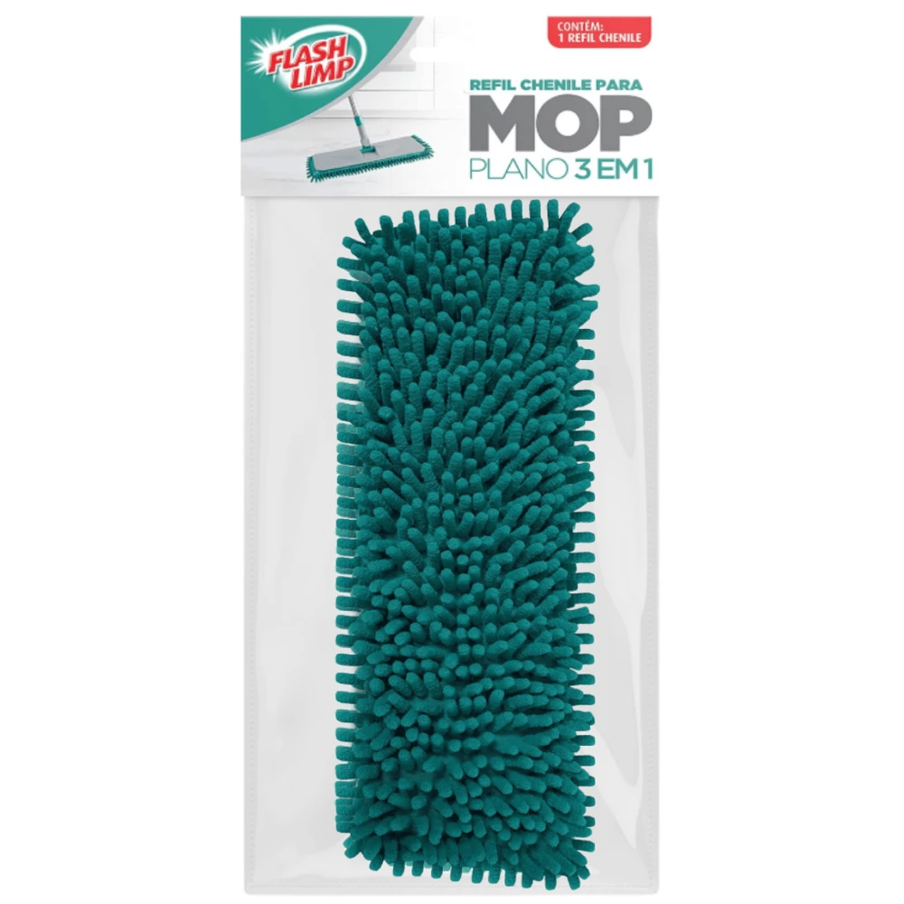 Refil Chenile Mop Plano 3 em 1 Flash Limp Original: a solução prática e eficiente para a limpeza diária da sua casa. Desenvolvido com fibra chenile de alta absorção, este refil substitui facilmente o original, garantindo máxima retenção de sujeira e líquido sem danificar superfícies delicadas. Ideal para todos os tipos de pisos, ele é lavável, durável e mantém a eficiência por mais tempo, proporcionando limpeza profunda e higiene superior.