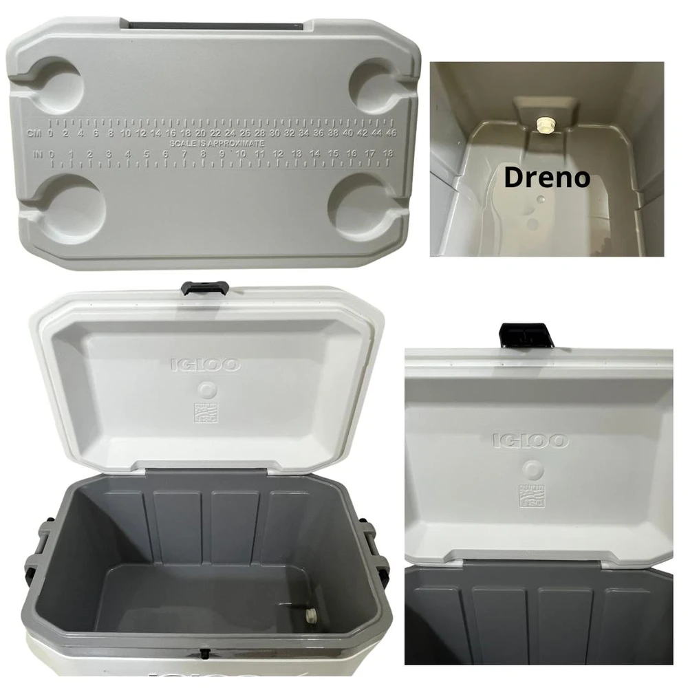 O refrigerador Igloo Latitude 54 Qt em branco é a solução ideal para manter suas bebidas geladas em qualquer ocasião. Seu design funcional inclui montanhas-russas integradas, permitindo que você desfrute de seus refrigerantes e cervejas sem preocupações. Feito de plástico resistente, este refrigerador é perfeito para piqueniques, dias de praia ou reuniões ao ar livre.