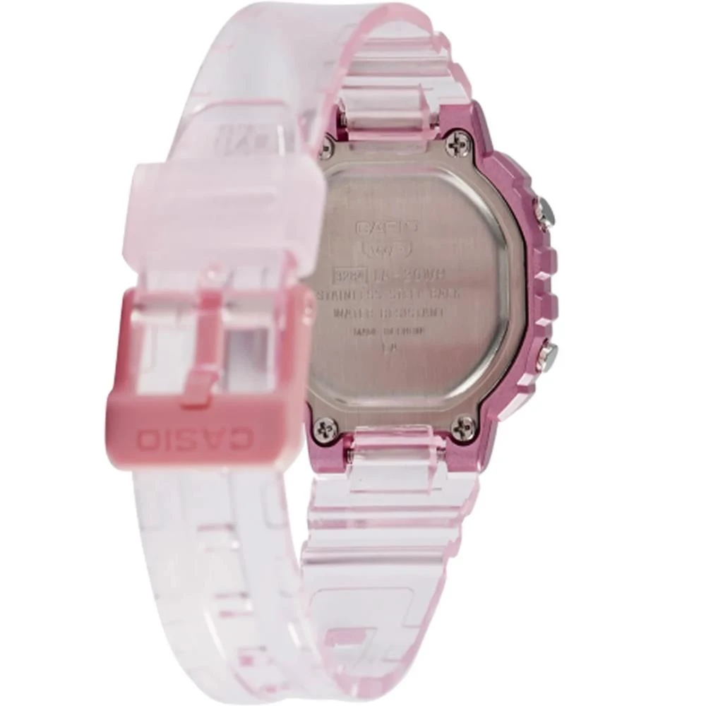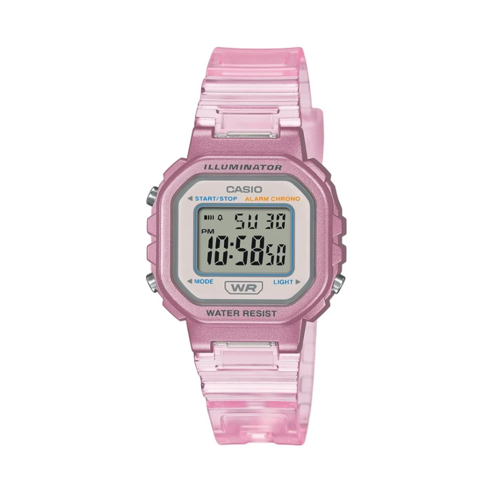 Visor: LCD Funções: Calendário, Iluminação, Cronógrafo, Alarme, Sinal HorárioResistência à Água: 50mDiâmetro da Caixa: 30 mm x 26 mmCaracterísticas: com caixa em Resina Rosa e pulseira em Poliuretano Rosa TranslúcidoVidro: AcrílicoEstilo: InfantilFundo ParafusadoAlimentação do Maquinário: BateriaGarantia de 1 Ano