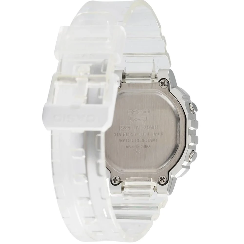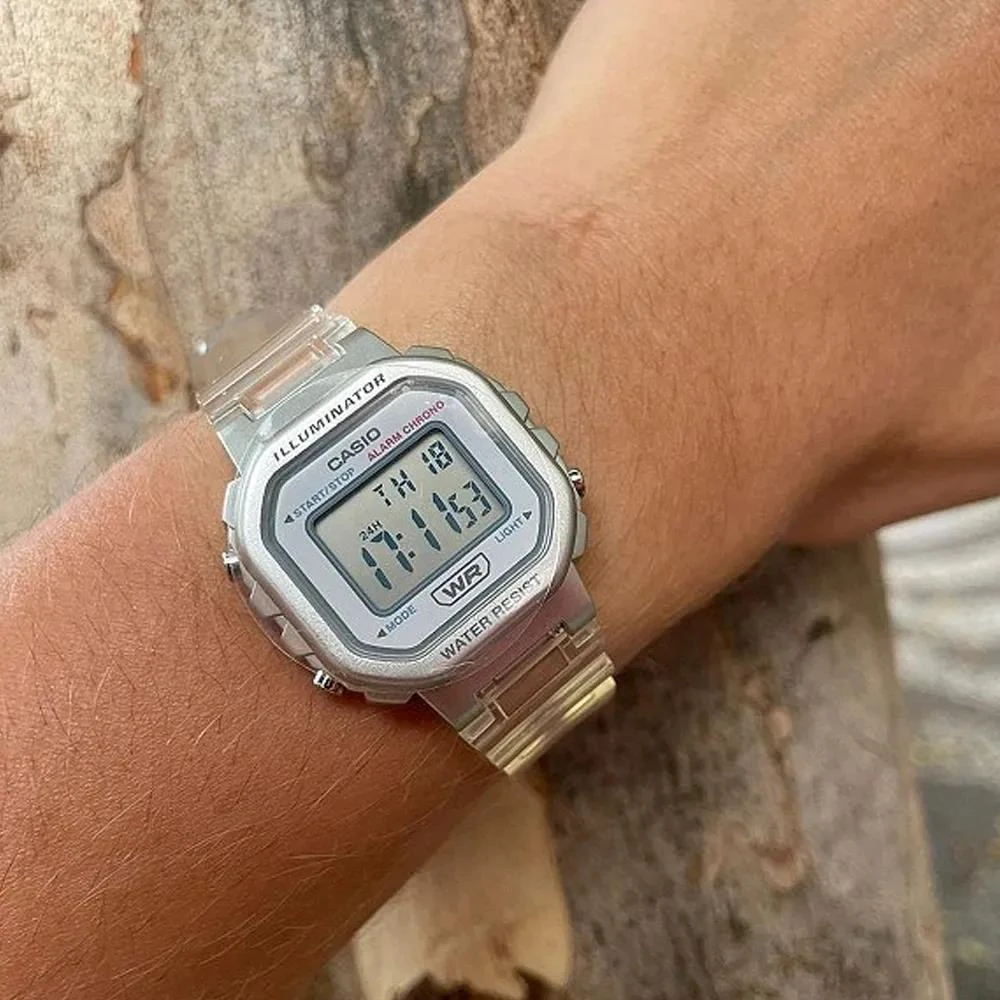 Visor: LCD Funções: Calendário, Iluminação, Cronógrafo, Alarme, Sinal HorárioResistência à Água: 50mDiâmetro da Caixa: 30 mm x 26 mmCaracterísticas: com caixa em Resina Prateada e pulseira em Poliuretano TransparenteVidro: AcrílicoEstilo: InfantilFundo ParafusadoAlimentação do Maquinário: BateriaGarantia de 1 Ano