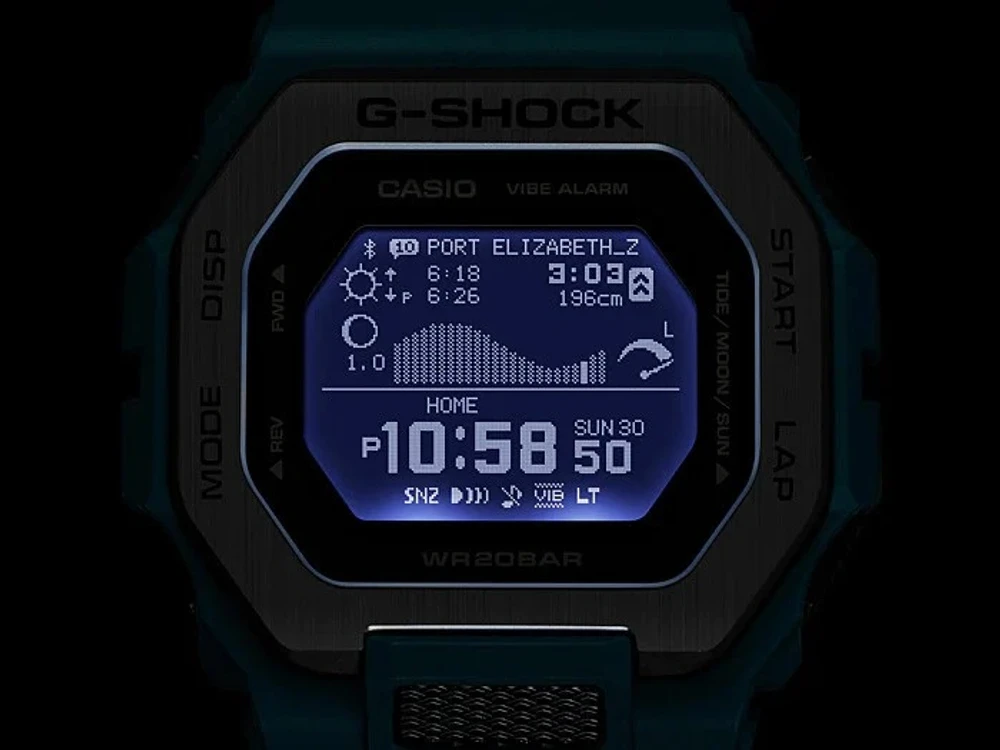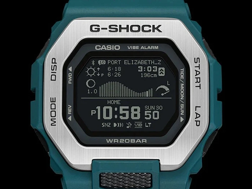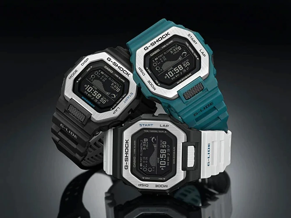 Da série G-LIDE de relógios para esportes radicais G-SHOCK vem um par de novos modelos que adicionam designs de surfe noturno ao GBX-100.