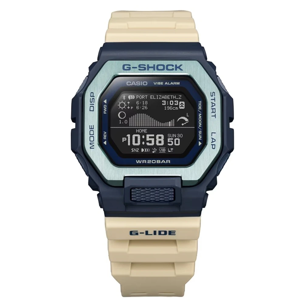 Da série G-LIDE de relógios para esportes radicais G-SHOCK vem um par de novos modelos que adicionam designs de surfe noturno ao GBX-100.
