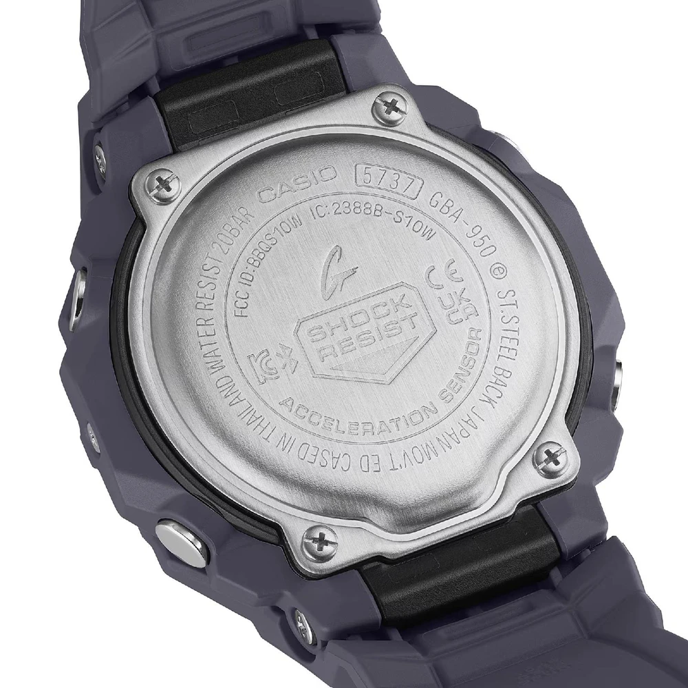 Leve seu treino a outro nível com o G-SHOCK GBA-950, desenvolvido para esportes urbanos. O modelo conta com recursos como monitoramento de ritmo, Auto Lap, contagem de passos e sincronização via Bluetooth® com o smartphone, além de integração ao app para gerenciamento de atividades.