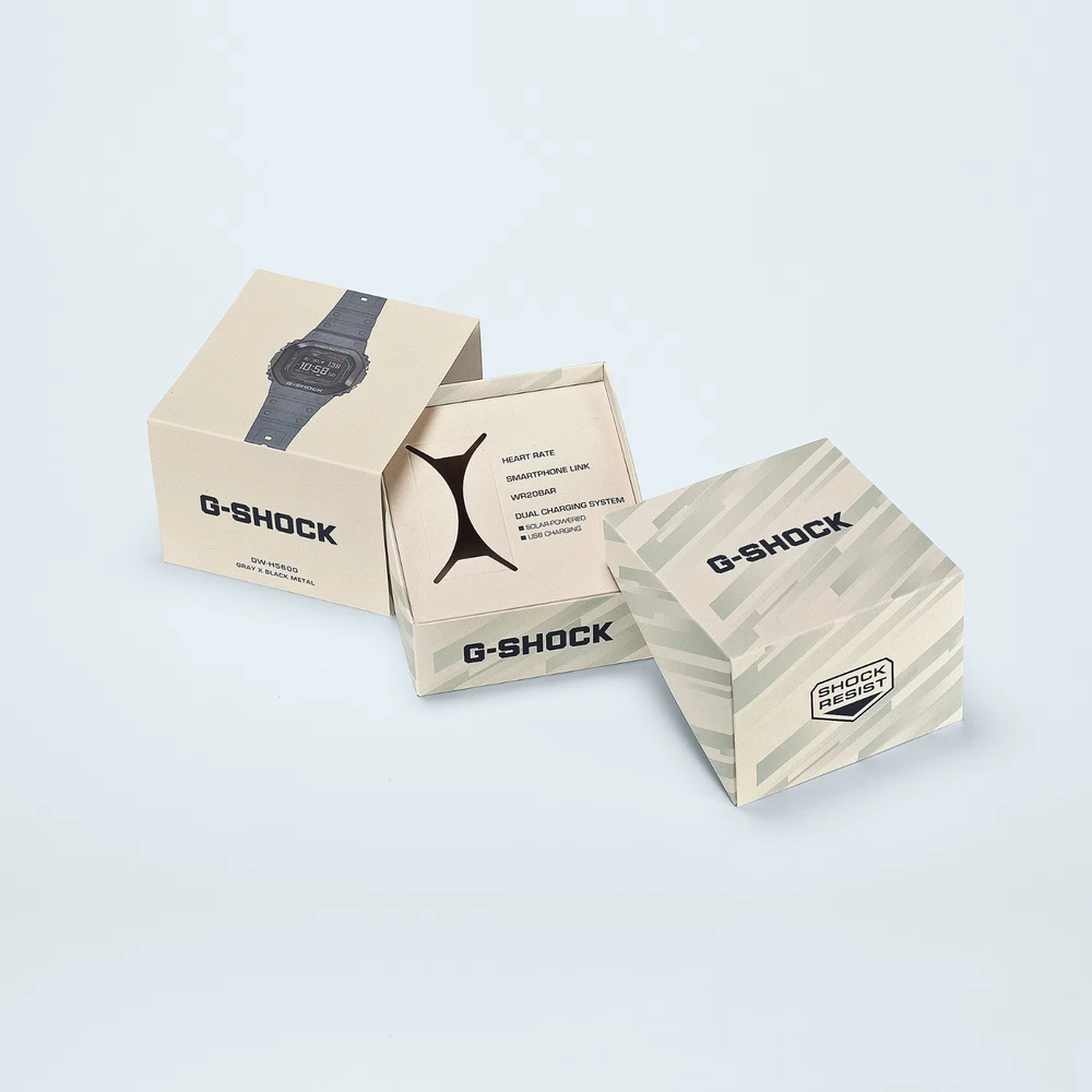 Assuma o controle e se prepare para exceder os limites com o DW-H5600MB, da resistente linha esportiva G-SQUAD de relógios G-SHOCK. Esses relógios multiesportivos vêm equipados com funções para monitorar todos os tipos de treinos. Meça a frequência cardíaca com o sensor óptico e use o acelerômetro para contagem de passos. Você pode acessar a biblioteca do smartwatch PolarTM para analisar treinos, monitorar a recuperação pós-sono e dar suporte a exercícios respiratórios. Seja para correr, caminhar ou trabalhar, esse equipamento essencial inclui um LCD de memória em pixel (MIP) de alta definição para uma leitura fácil e de alta visibilidade onde quer que você esteja. Condição física e saúde autênticas também acompanham o cuidado com o meio ambiente. Por esse motivo, criamos o painel e a pulseira com resina de base biológica. Produzidos a partir de materiais orgânicos renováveis, plásticos de biomassa são materiais de alto peso molecular, quimicamente ou biologicamente sintetizados, que ajudam a reduzir os impactos ambientais e aproximar o mundo de uma economia circular. Carregue com USB ou com energia solar e você manterá sempre o seu ritmo.