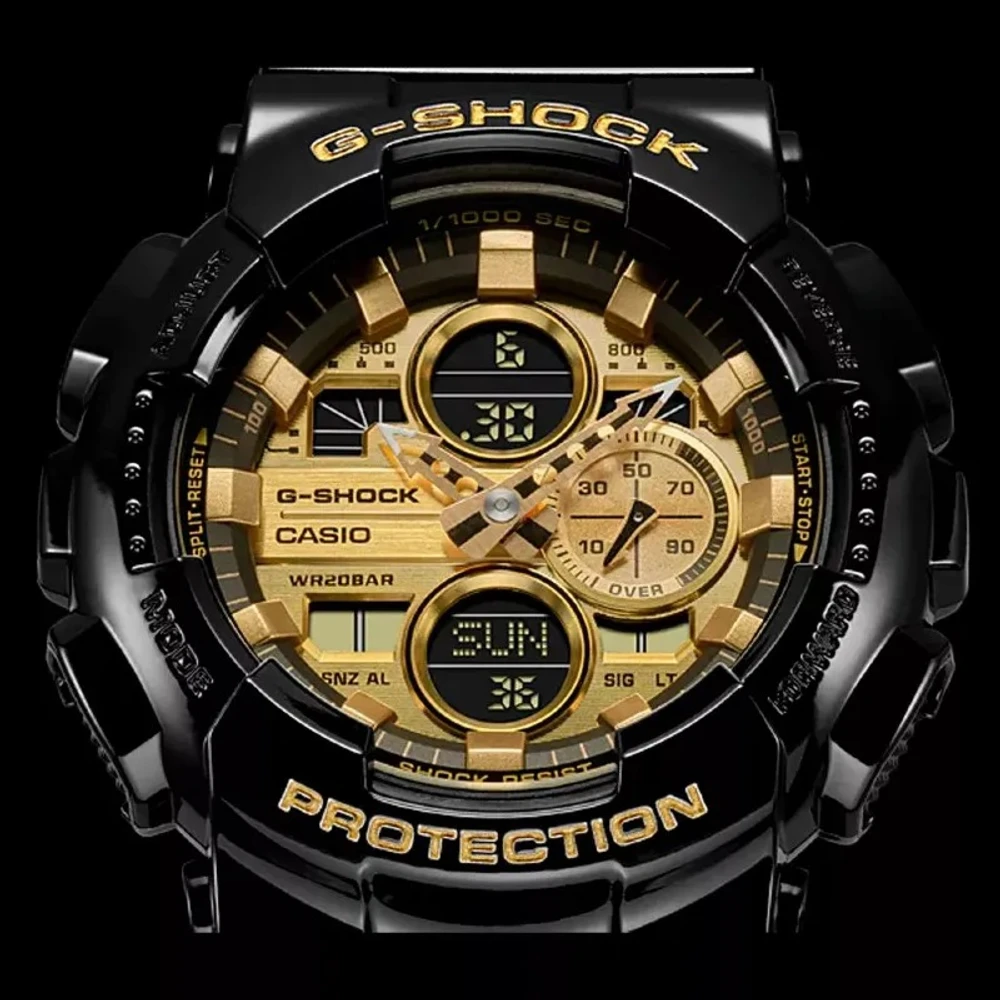 Desde os relógios G-SHOCK, os relógios resistentes que estão sempre evoluindo em uma busca interminável pela força, esse modelo de combinação analógico-digital apresenta um design de mostrador atualizado e formato de ponteiros. Apresenta um acabamento preto brilhante e dourado polido. Um modelo com uma estrutura G-SHOCK robusta e um estilo elegante e de excelente aparência que combina perfeitamente com a moda urbana de inverno.