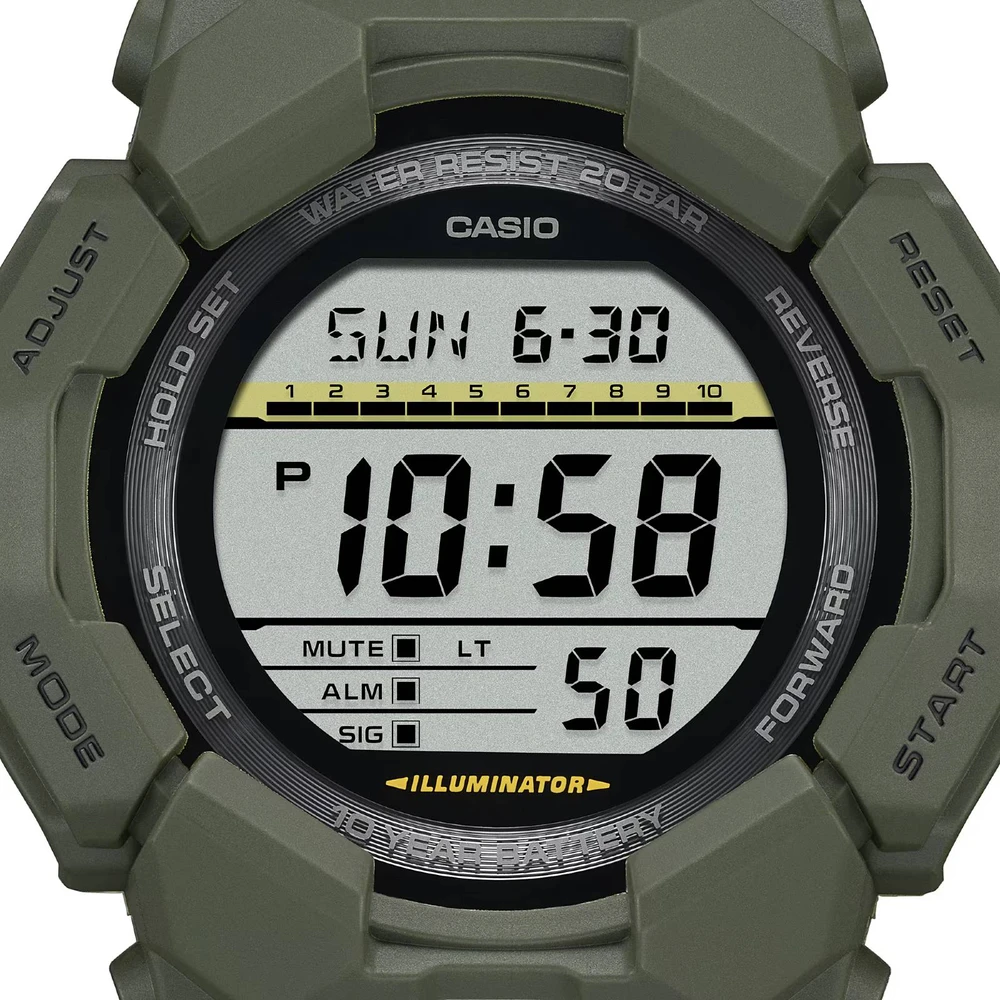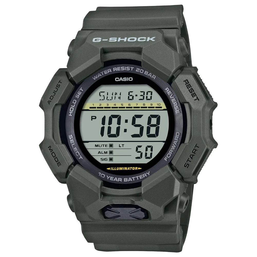 O GD-010 digital oferece recursos úteis como hora mundial e cronômetro, bem como uma luz de LED de alto brilho, que pode ser facilmente acessada a partir do grande botão na frente da caixa, garantindo visibilidade mesmo no escuro. Feito com resina de base biológica e equipado com uma bateria de 10 anos, este G-SHOCK é ótimo se você quiser reduzir o impacto ambiental.