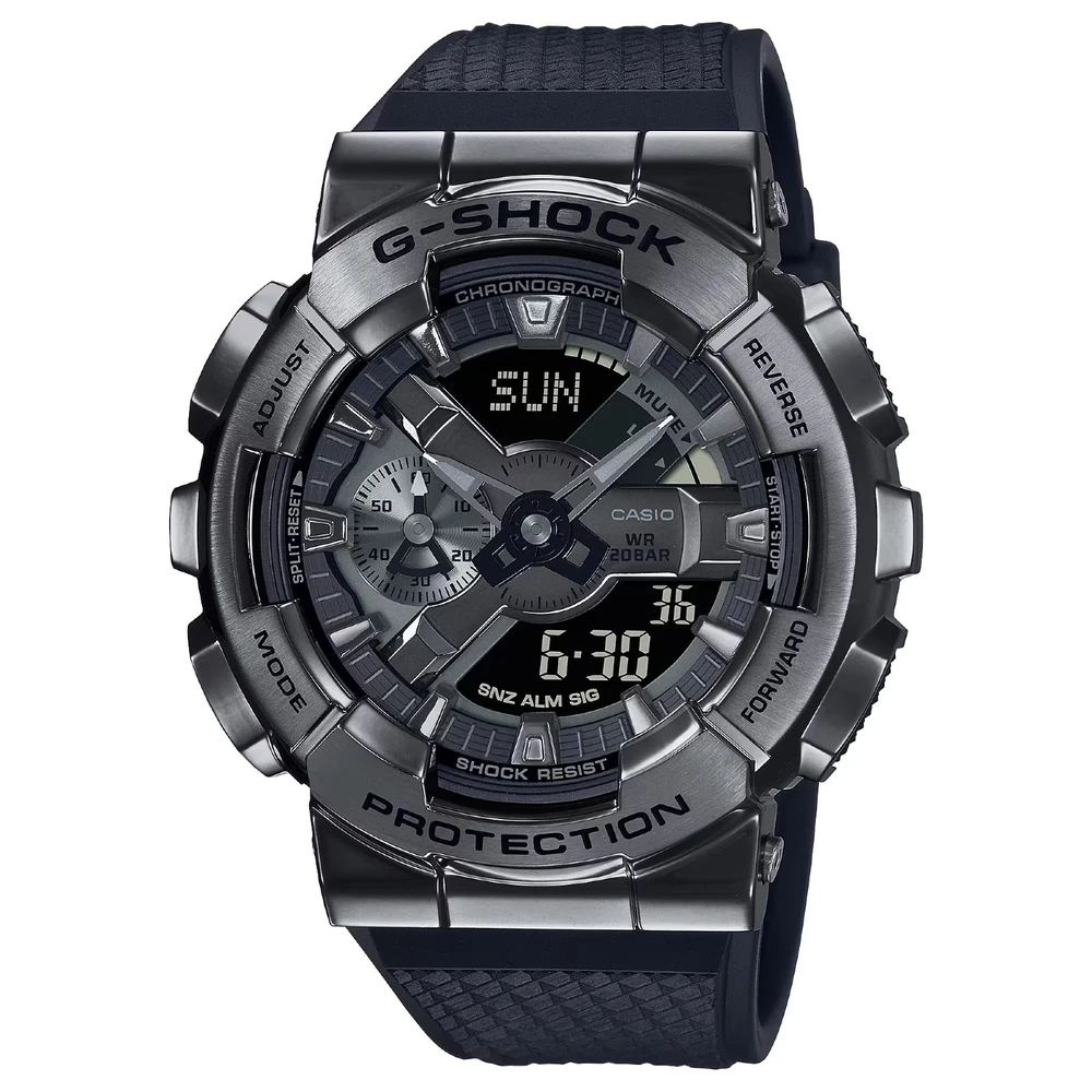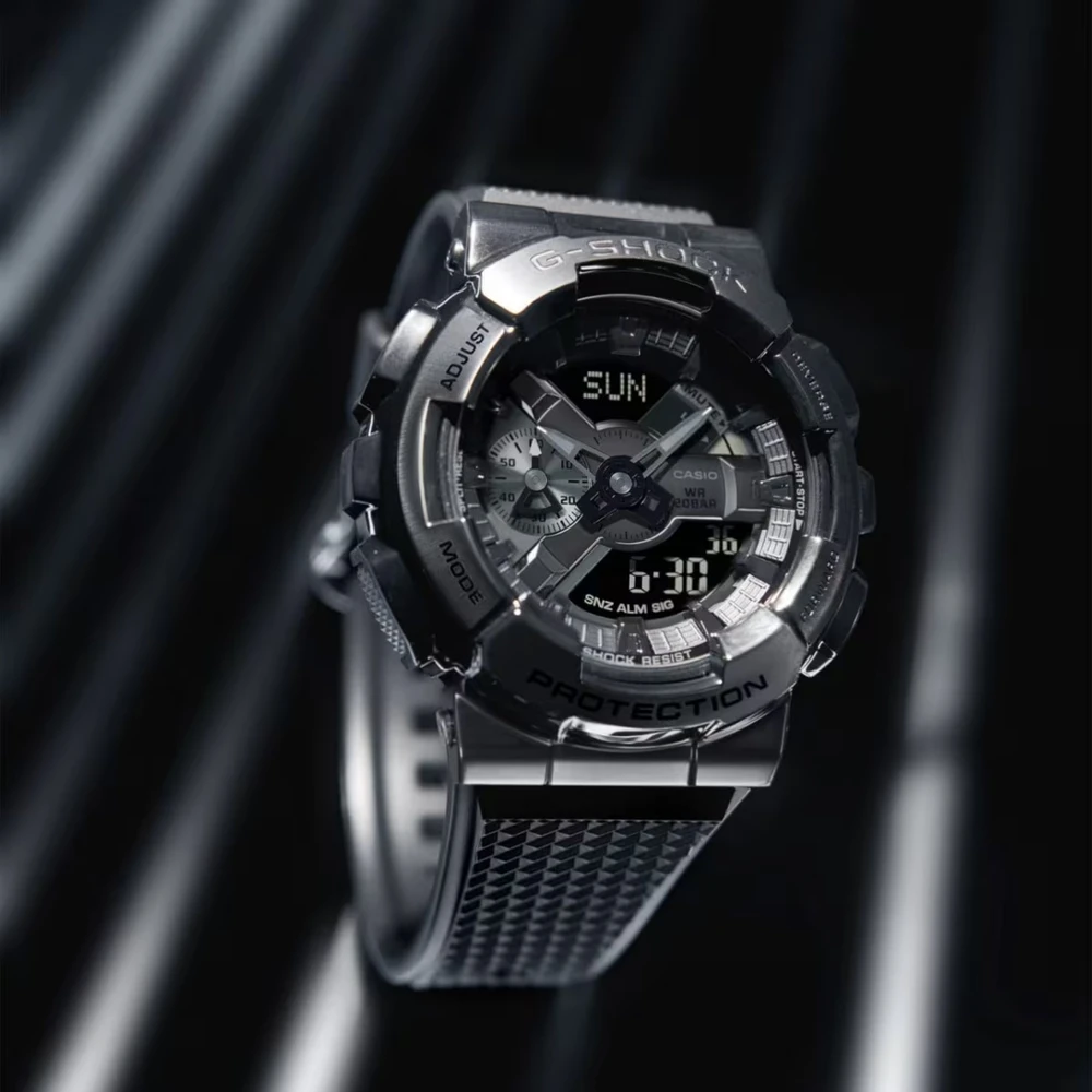 Chega ao mercado mais um modelo de G-Shock com caixa aço inoxidável. O tradicional GA-110 ganhou sua roupagem de aço e certamente será mais um modelo de grande destque da linha de aço G-Shock. Com mecanismo analógico e digital da série GA-110 foi forjada, cortada e polida para dar a ele seu design único. O modelo GM-110 possui acabamento com aparência metálica polida, iradíssima!