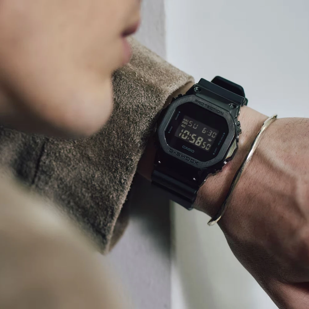 Desde o G-SHOCK, os relógios que estão sempre evoluindo em busca de resistência, esse modelo usa os materiais metálicos do design quadrado da série 5600. O uso de um material de resina dentro da caixa e de um material de aço inoxidável rígido para a tampa da moldura cria uma sensação de alta qualidade enquanto mantém um encaixe leve e confortável. O uso de um LCD invertido também proporciona um acabamento mais elegante. Ao mesmo tempo em que mantém os conceitos herdados da primeira geração, a série 5600 foi refinada para buscar maior qualidade do relógio e evoluir o exterior e a usabilidade.