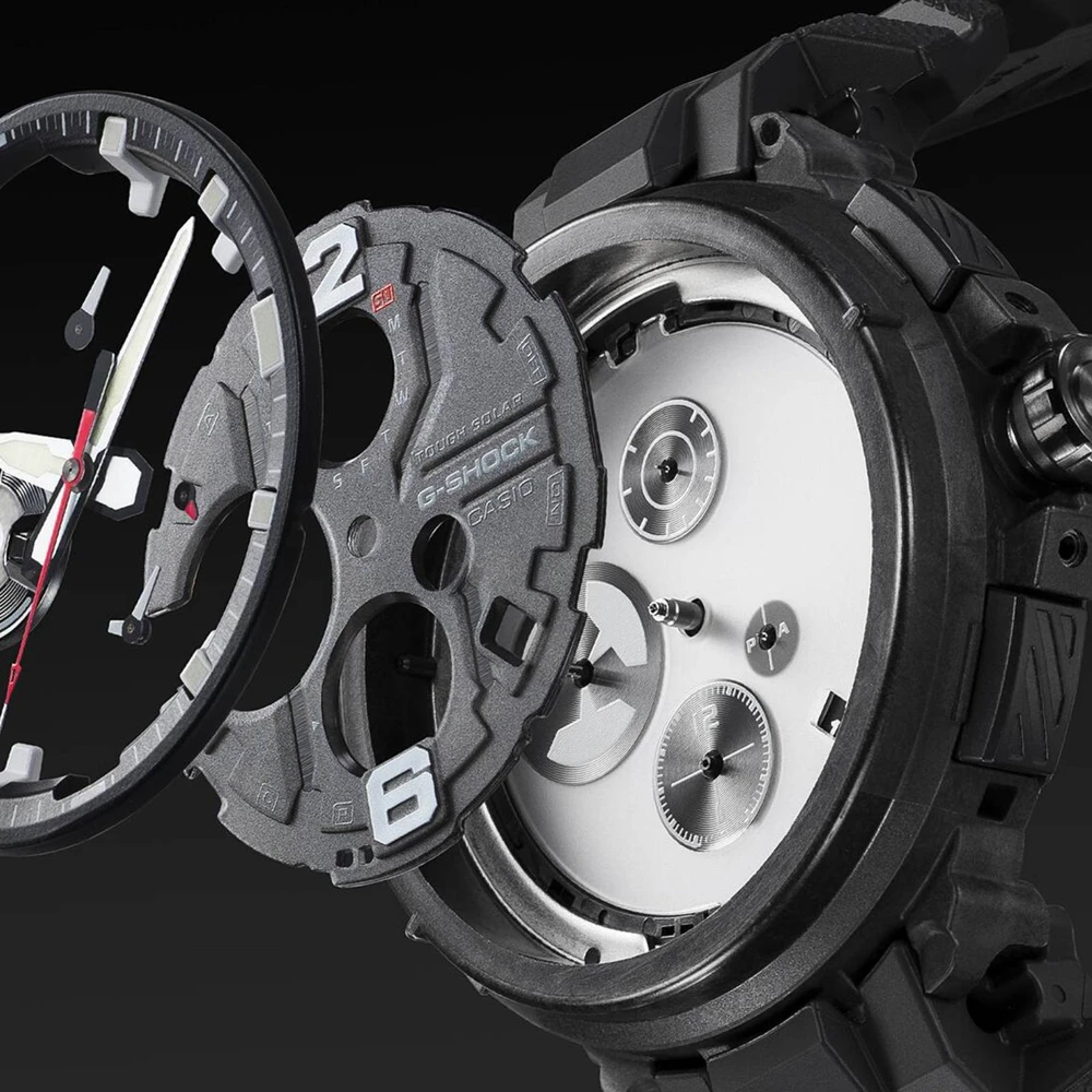 Apresentamos o GRAVITYMASTER GR-B300, um equipamento profissional inspirado na aviação concebido para funcionar mesmo nos ambientes mais difíceis, do G-SHOCK MASTER da linha G. O GR-B300 possui uma estrutura de proteção principal em carbono, que fornece resistência ao choque e rigidez e resistência à corrosão do material de carbono usado em fuselagem de aeronaves. A caixa em resina reforçada com fibra de carbono e o design perfeito da moldura inspirada nas aeronaves da próxima geração se unem de forma ousada e poderosa.