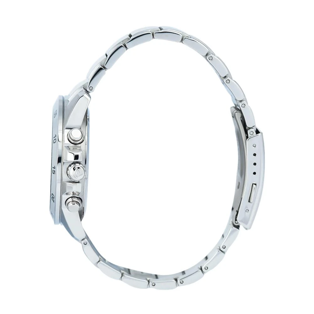 Visor: Azul PetróleoFunções: Analógico, Cronógrafo, CalendárioResistência à Água: 100mDiâmetro da Caixa: 42 mmCaracterísticas: com caixa em Aço Inoxidável e pulseira em Aço InoxidávelFundo: RosqueadoAlimentação do Maquinário: BateriaVidro: Cristal MineralMaquinário JaponêsLinha: Casio EdificeAro FixoGarantia de 1 Ano