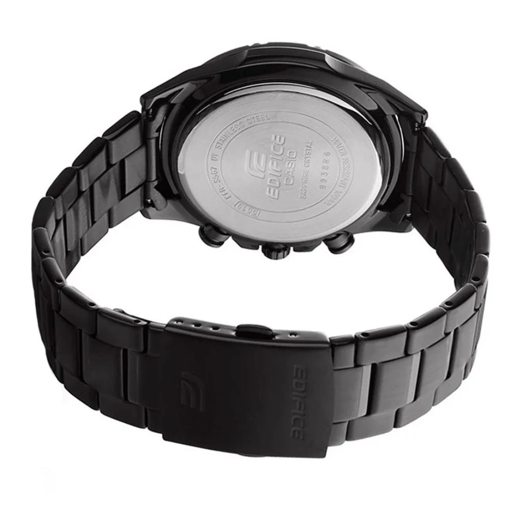 Visor: PretoFunções: Analógico, Cronógrafo, CalendárioResistência à Água: 100mDiâmetro da Caixa: 44 mmCaracterísticas: com caixa em Aço Inoxidável e pulseira em Aço InoxidávelFundo: PressãoAlimentação do Maquinário: BateriaVidro: SafiraMaquinário JaponêsLinha: Casio EdificeGarantia de 1 Ano