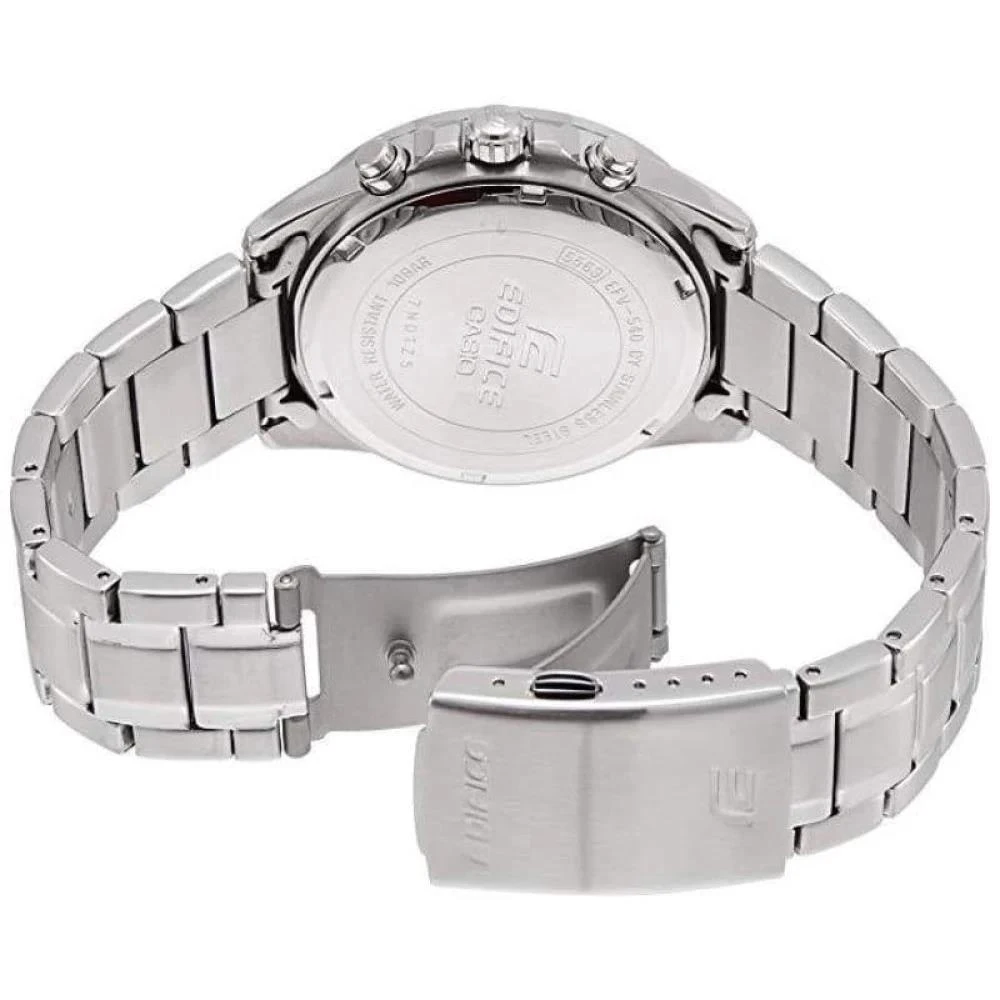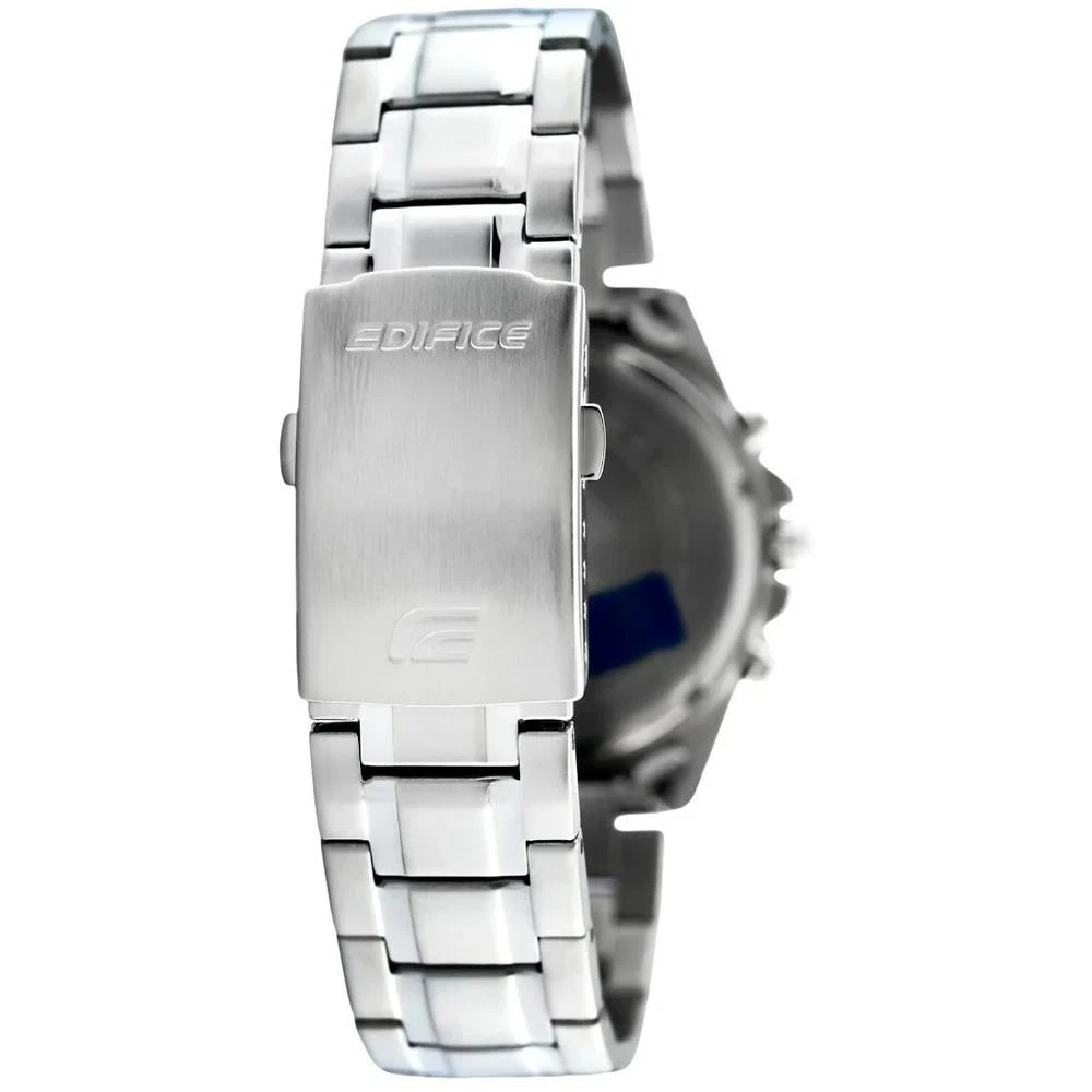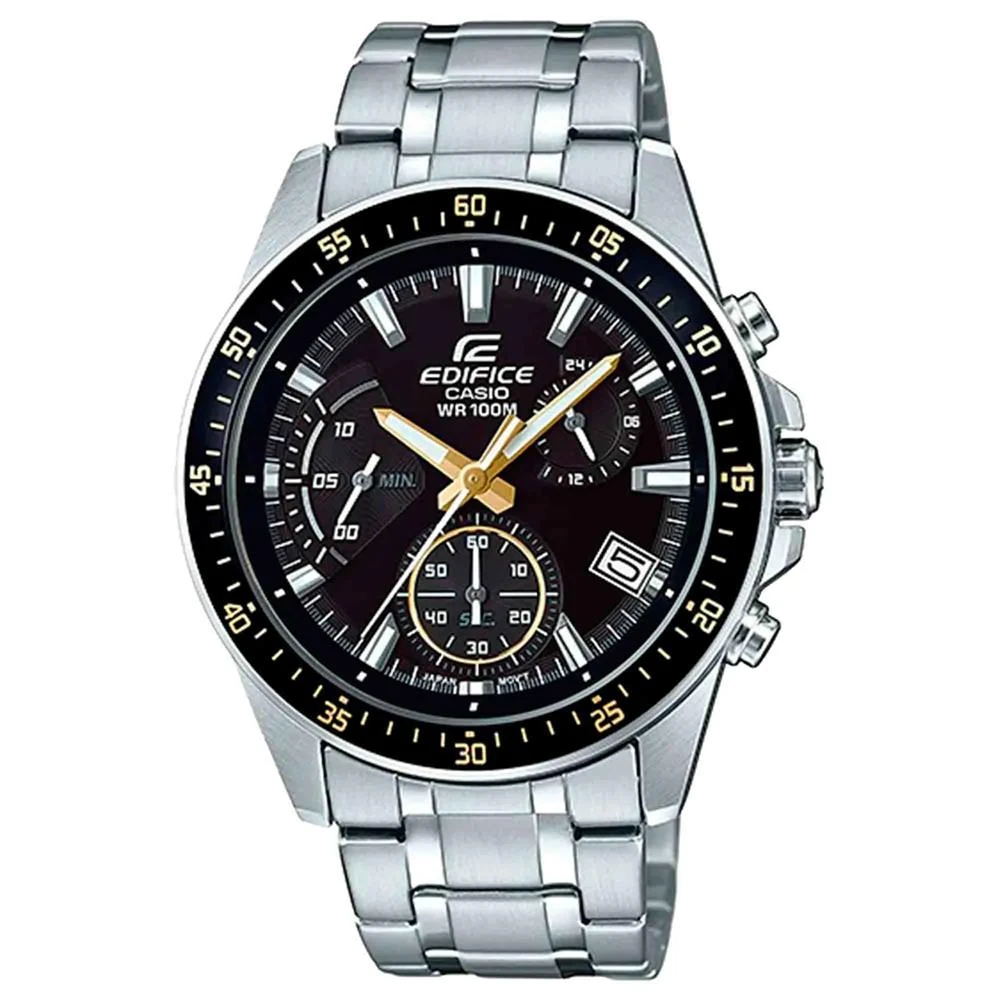 Visor: PretoFunções: Analógico, Cronógrafo, CalendárioResistência à Água: 100mDiâmetro da Caixa: 42 mmCaracterísticas: com caixa em Aço Inoxidável e pulseira em Aço InoxidávelFundo: RosqueadoAlimentação do Maquinário: BateriaVidro: Cristal MineralMaquinário JaponêsLinha: Casio EdificeAro Preto FixoGarantia de 1 Ano