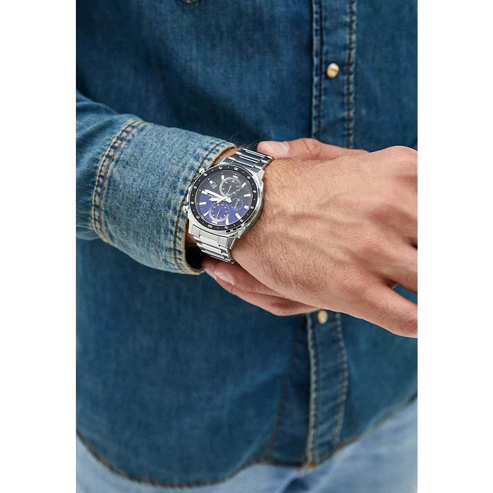 Visor: Azul e PretoFunções: Analógico, Cronógrafo, CalendárioResistência à Água: 100mDiâmetro da Caixa: 42 mmCaracterísticas: com caixa em Aço Inoxidável e pulseira em Aço InoxidávelFundo: RosqueadoAlimentação do Maquinário: BateriaVidro: Cristal MineralMaquinário JaponêsLinha: Casio EdificeGarantia de 1 Ano