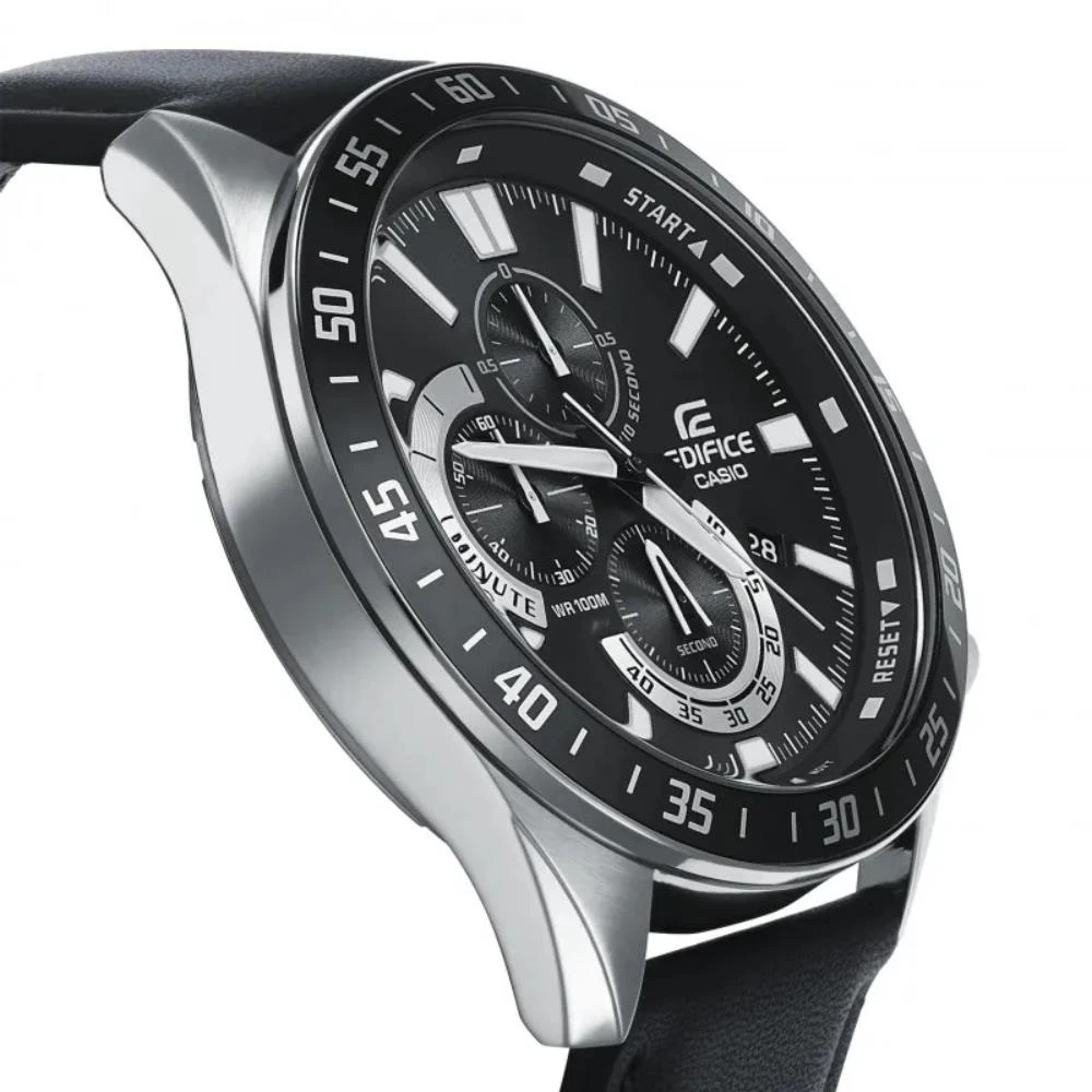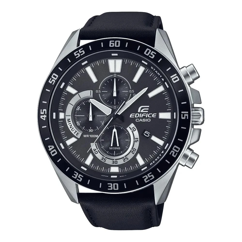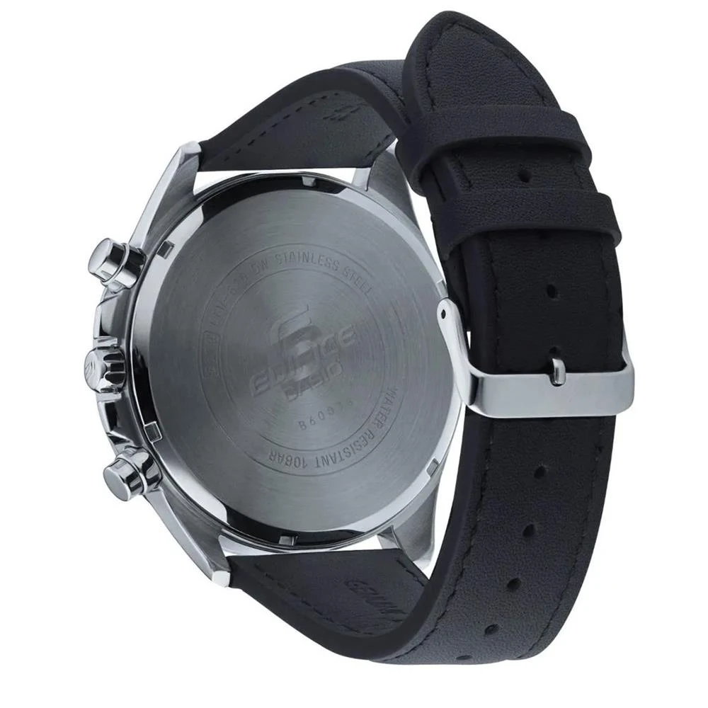 Visor: PretoFunções: Analógico, Cronógrafo, CalendárioResistência à Água: 100mDiâmetro da Caixa: 48 mmCaracterísticas: com caixa em Aço Inoxidável e pulseira em Couro Legítimo PretoFundo: RosqueadoAlimentação do Maquinário: BateriaVidro: Cristal MineralMaquinário JaponêsLinha: Casio EdificeAro Preto FixoGarantia de 1 Ano