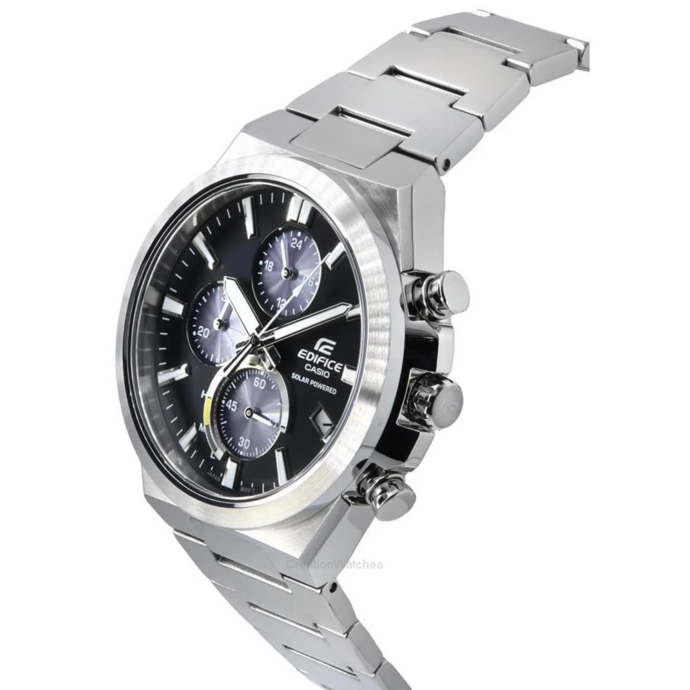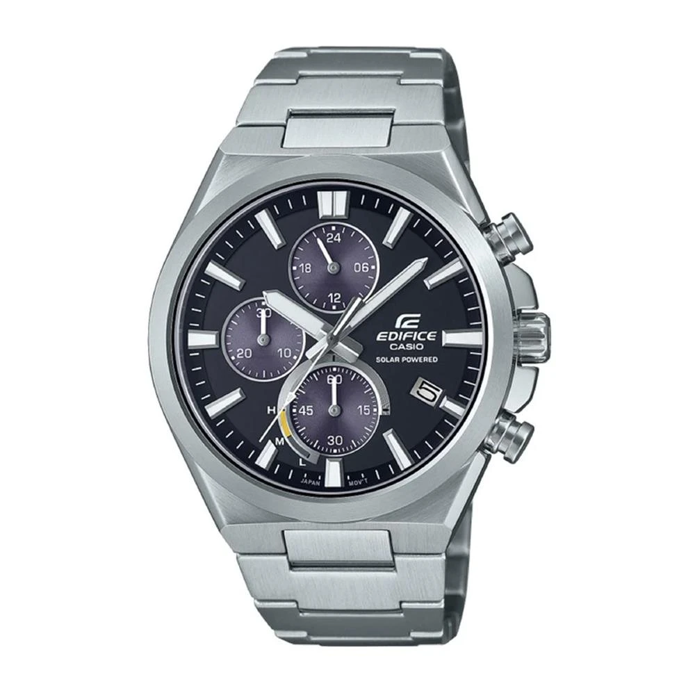 Visor: PretoFunções: Analógico, Cronógrafo, Calendário, SolarResistência à Água: 100mDiâmetro da Caixa: 42 mmCaracterísticas: com caixa em Aço Inoxidável e pulseira em Aço InoxidávelFundo: RosqueadoAlimentação do Maquinário: Energia SolarVidro: Cristal MineralMaquinário JaponêsLinha: Casio EdificeGarantia de 1 Ano