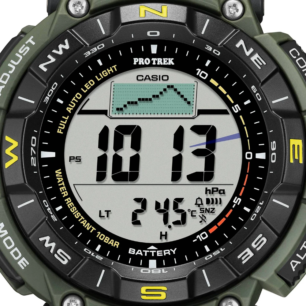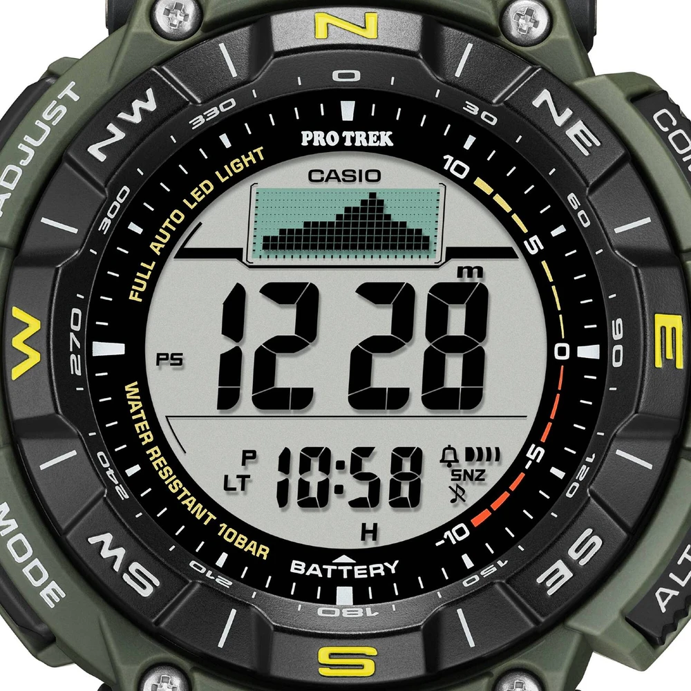 Esse relógio realmente oferece um pacote completo: funcionalidade externa conveniente com um toque em um relógio que incorpora materiais que devem ajudar a reduzir o impacto ambiental. Satisfaça sua paixão pelo ar livre e seu amor ao meio ambiente com o PRG-340-3DR digital.