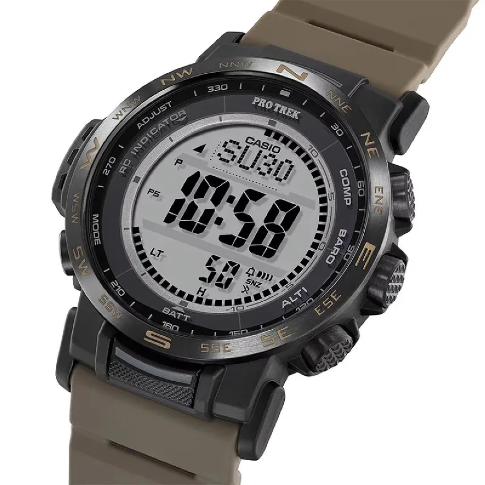 O modelo, além de suas funcionalidades padrão dos relógios Casio, o modelo Pro Trek conta com funções que são muito desejadas entre os montanhistas, são elas o barômetro, altímetro, bússola e termômetro. Essas funcionalidades permitem que você consiga calcular sua performance e seu desempenho para melhorar gradualmente.