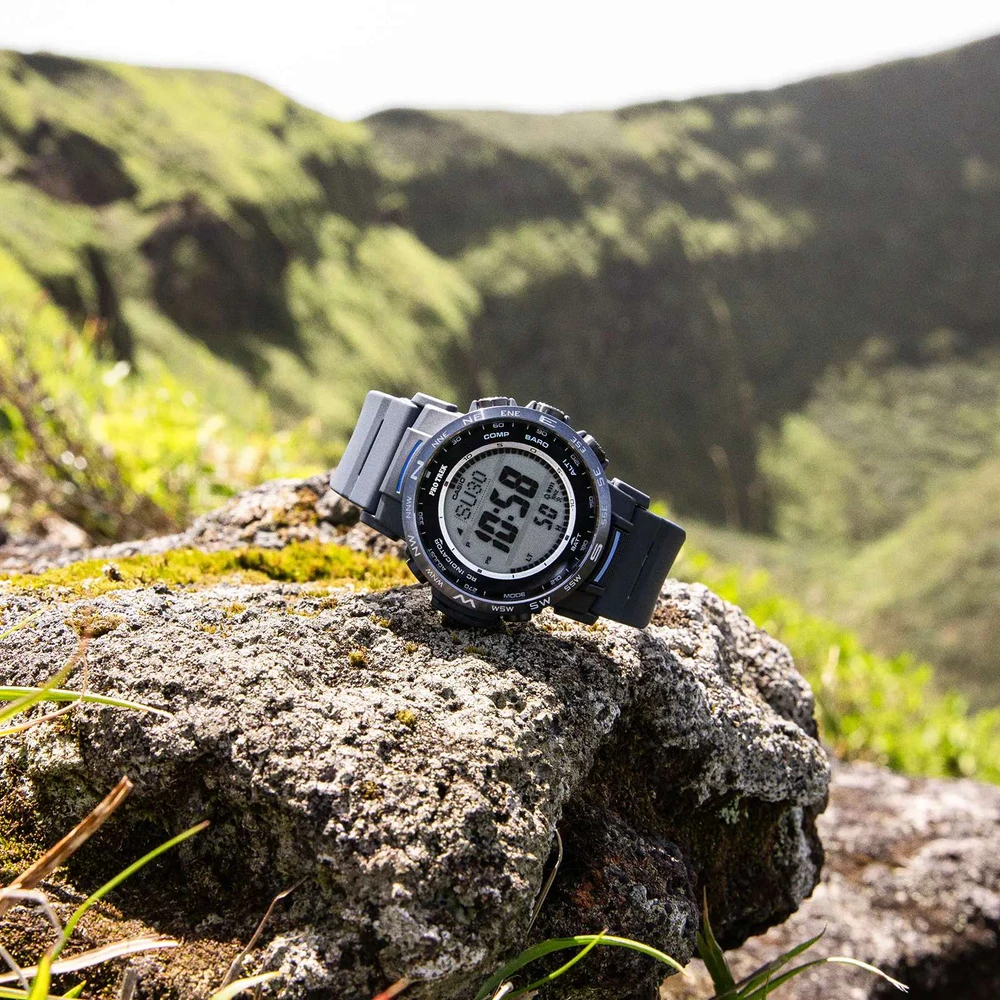 Esse relógio realmente oferece um pacote completo: funcionalidade externa conveniente com um toque em um relógio que incorpora materiais que devem ajudar a reduzir o impacto ambiental. Satisfaça sua paixão pelo ar livre e seu amor ao meio ambiente com o PRW-35 digital.