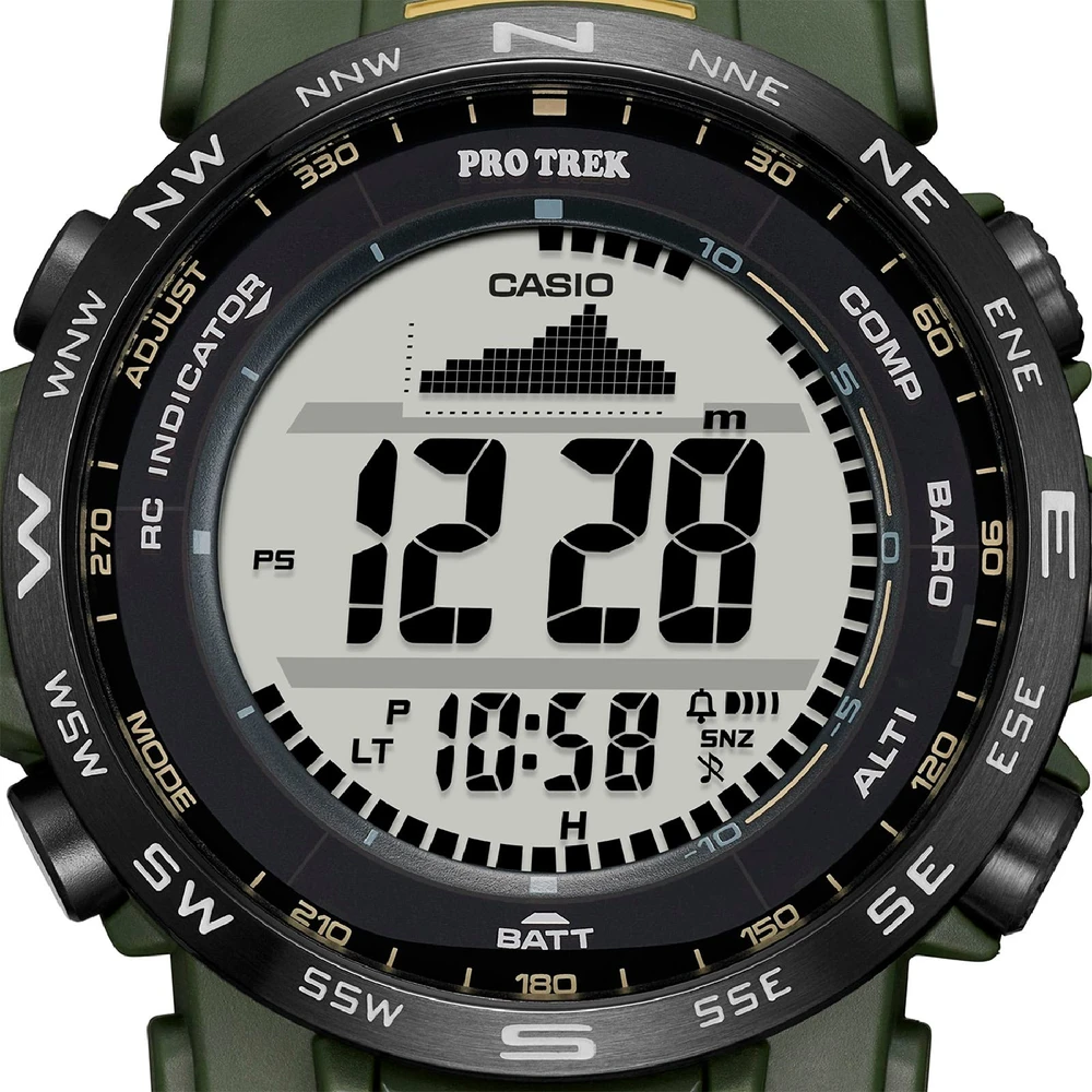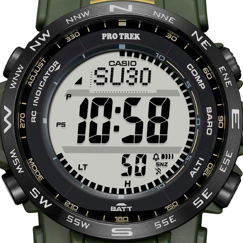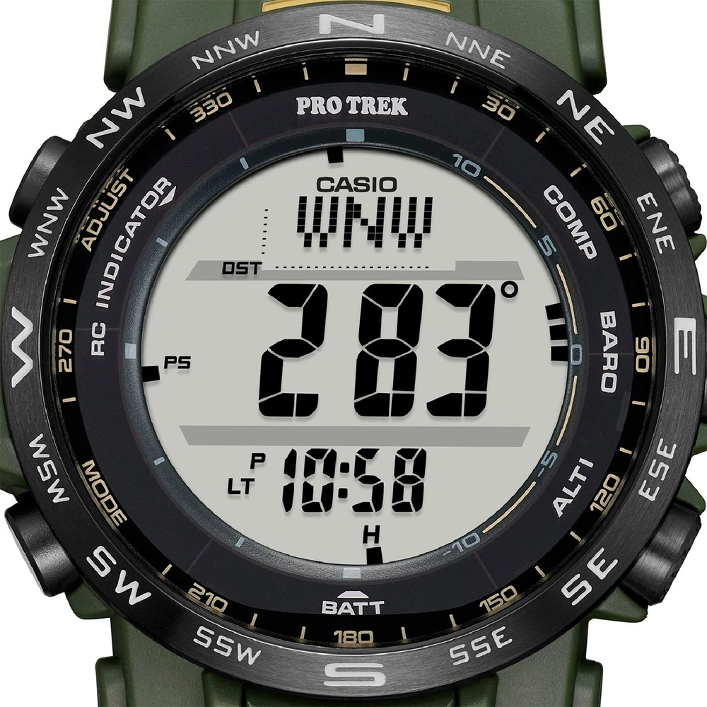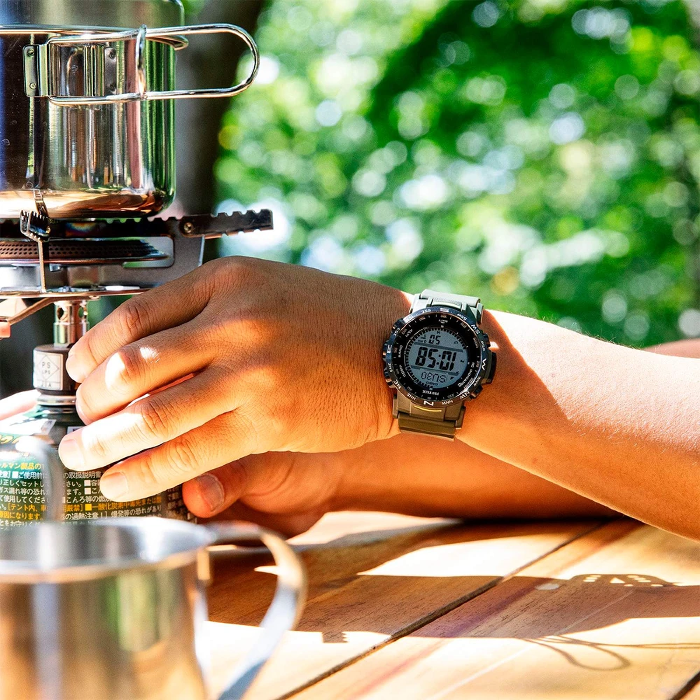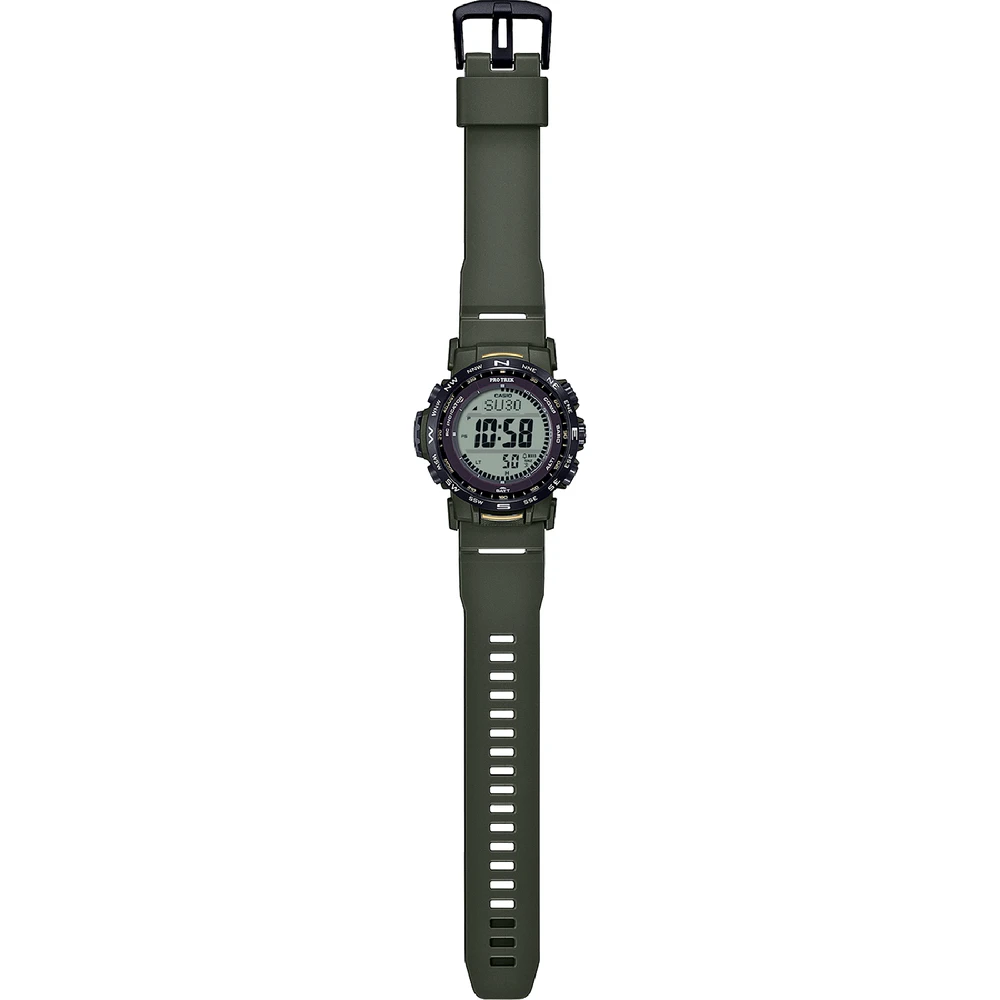 Esse relógio realmente oferece um pacote completo: funcionalidade externa conveniente com um toque em um relógio que incorpora materiais que devem ajudar a reduzir o impacto ambiental. Satisfaça sua paixão pelo ar livre e seu amor ao meio ambiente com o PRW-35 digital.