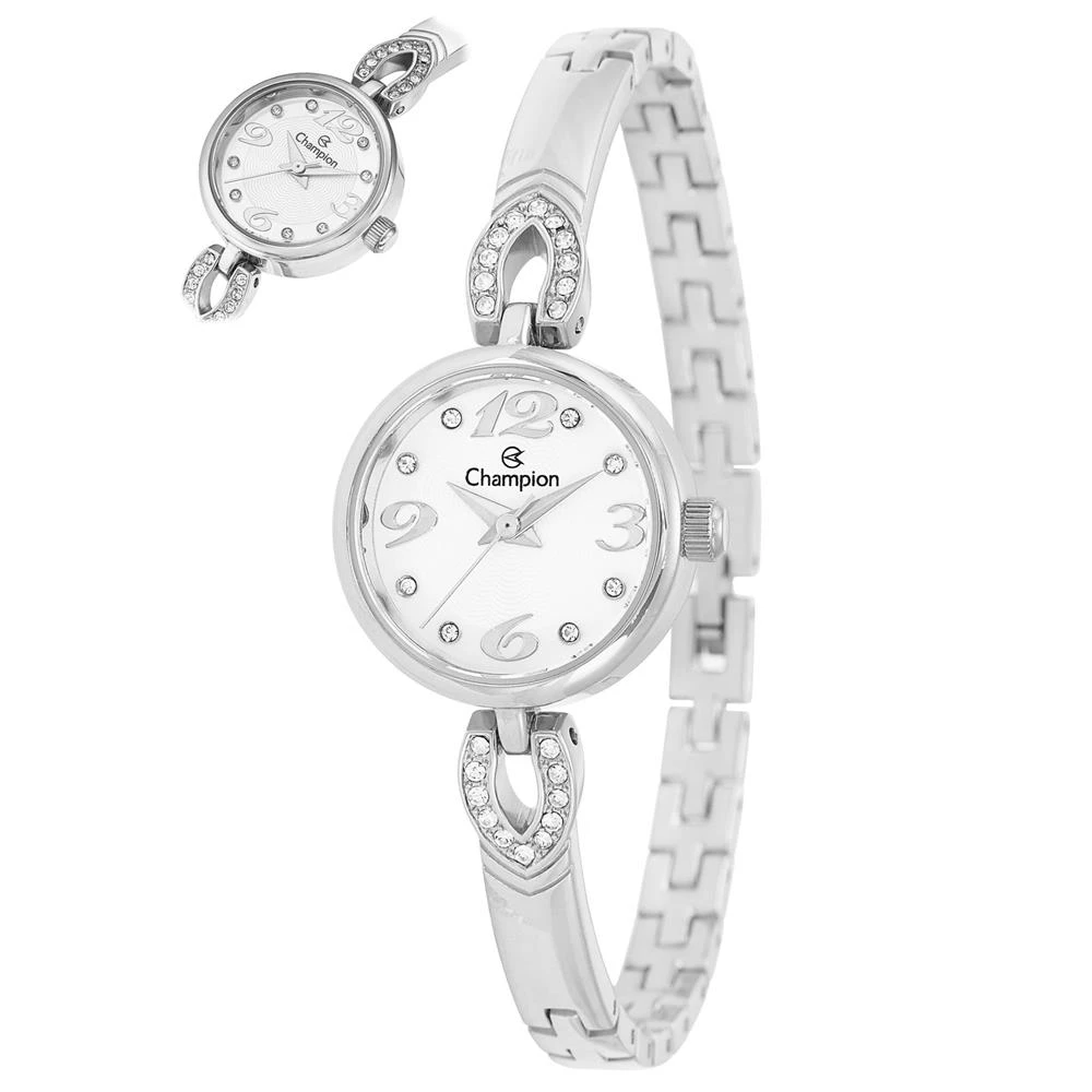 Caixa Em MetalPulseira Em Metal Estilo BraceleteVidro de Cristal MineralFundo RosqueadoResistente à Água 5 AtmDiâmetro / Largura da Caixa: 23.00 MMFunções: AnalógicoMostrador Prateado com números pedrasAlimentação do Maquinário: BateriaGarantia de 1 Ano