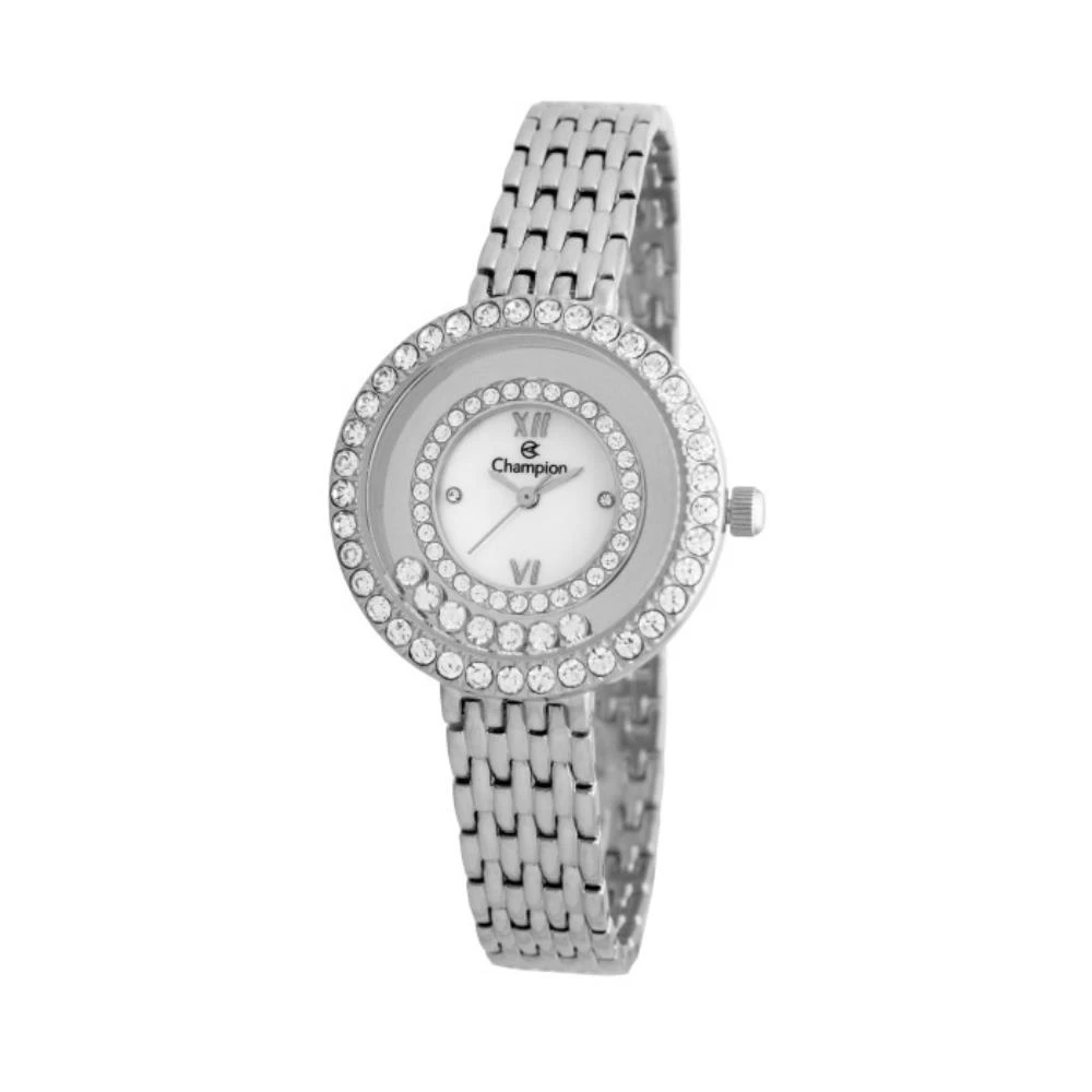 Caixa Em MetalPulseira Em MetalVidro de Cristal MineralFundo RosqueadoResistente à Água 5 AtmDiâmetro / Largura da Caixa: 32.00 MMFunções: AnalógicoMostrador Estilo Madreperola Branca com algarismos romanos e pedrasAro externo com pedrasAlimentação do Maquinário: BateriaGarantia de 1 Ano