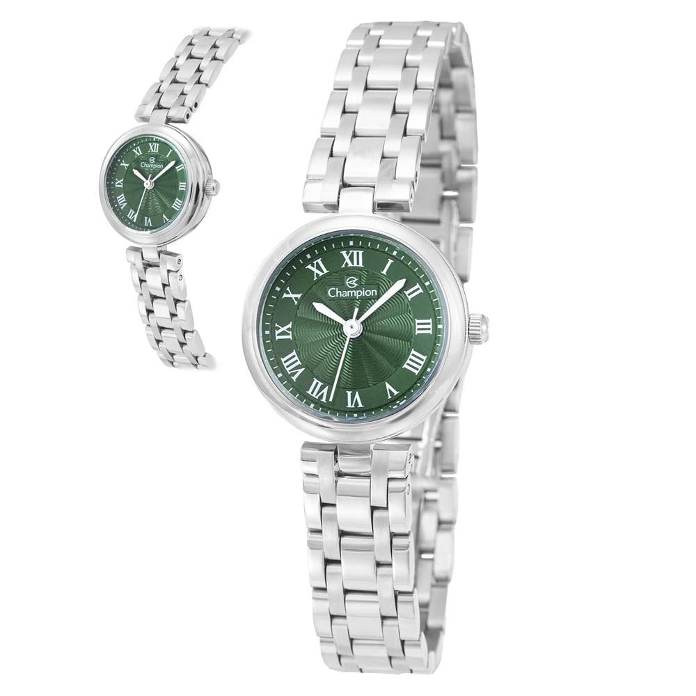 Caixa Em MetalPulseira Em MetalVidro de Cristal MineralFundo RosqueadoResistente à Água 5 AtmDiâmetro / Largura da Caixa: 25.00 MMFunções: AnalógicoMostrador Verde com algarismos romanosAlimentação do Maquinário: BateriaGarantia de 1 Ano