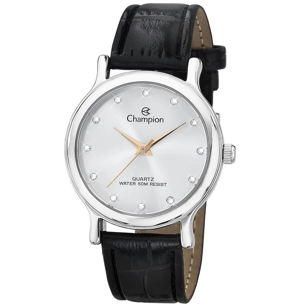 Caixa Em MetalPulseira Em Couro Ecológico PretaVidro de Cristal MineralFundo RosqueadoResistente à Água 5 AtmDiâmetro / Largura da Caixa: 40.00 MMFunções: AnalógicoMostrador Prateado com pedrasAlimentação do Maquinário BateriaGarantia de 1 Ano