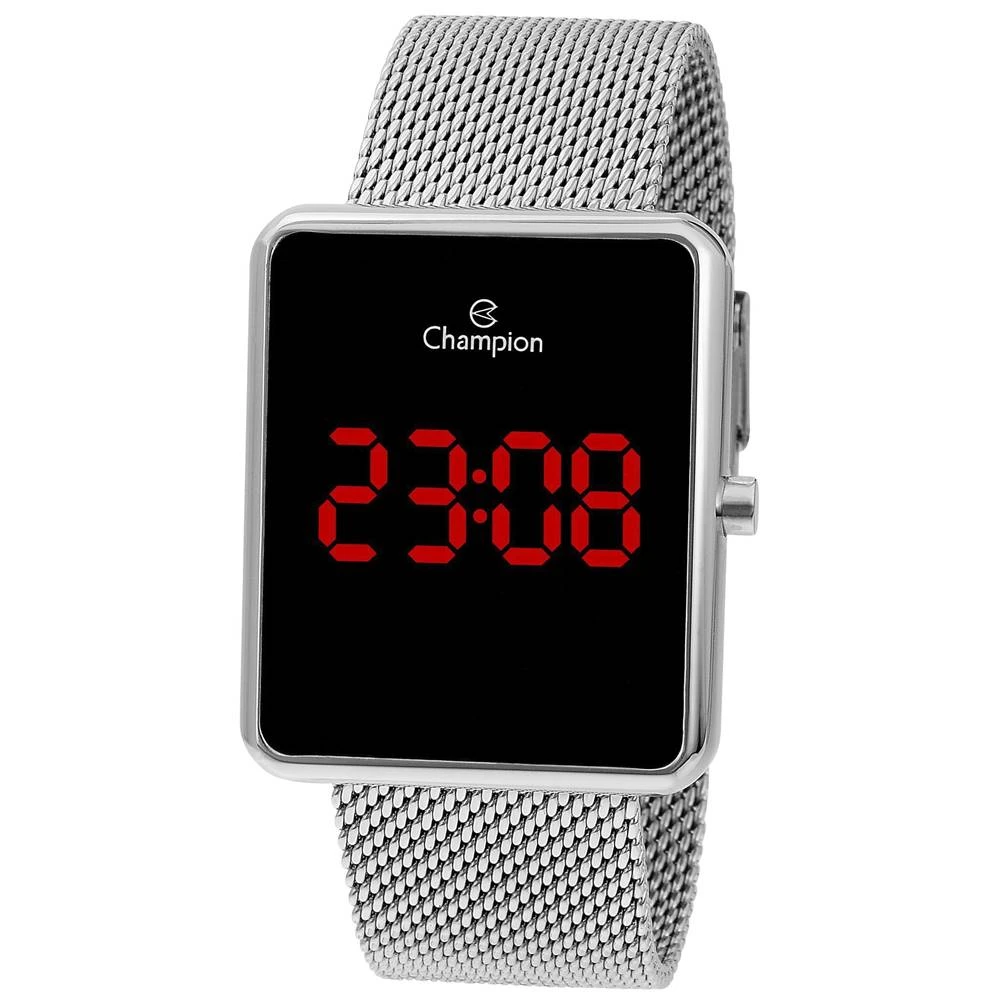 Caixa Em MetalPulseira Em Malha de Aço MeshVidro de Cristal MineralFundo RosqueadoResistente à Água 3 AtmDiâmetro / Largura da Caixa: 33.00 MM x 39 MMFunções: Digital, LED Vermelho, DataMostrador PrateadoAlimentação do Maquinário: BateriaGarantia de 1 Ano