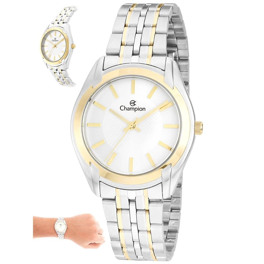 Caixa Em MetalPulseira Em AçoVidro de Cristal MineralFundo RosqueadoResistente à Água 5 AtmDiâmetro / Largura da Caixa: 36.00 MMFunções: AnalógicoMostrador PrateadoAlimentação do Maquinário: BateriaPrateado com DouradoGarantia de 1 Ano