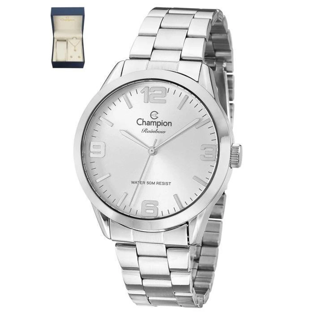 Relógio Champion Feminino Ref: Cn29893c Prateado + Semijóia