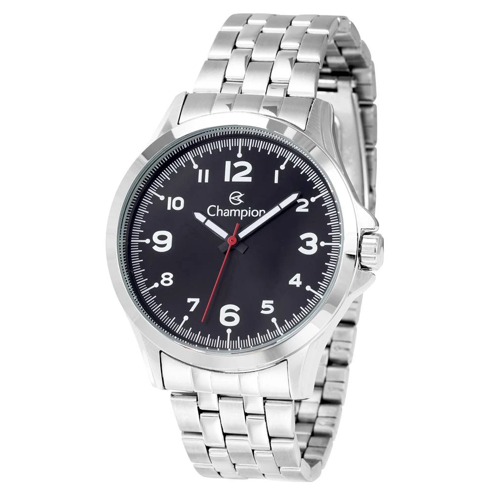 Caixa Em MetalPulseira Em AçoVidro de Cristal MineralFundo de PressãoResistente à Água 5 AtmDiâmetro / Largura da Caixa: 44.00 MMFunções: AnalógicoMostrador Preto com todos os númerosAlimentação do maquinário: BateriaGarantia de 1 Ano