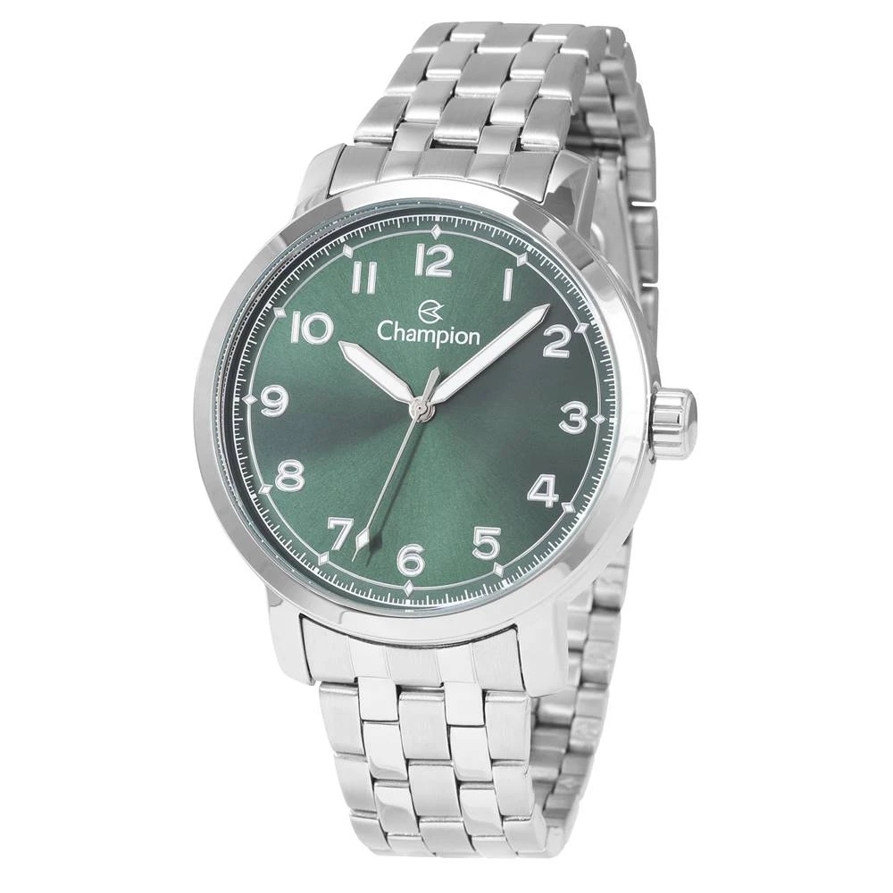Caixa Em MetalPulseira Em AçoVidro de Cristal MineralFundo de PressãoResistente à Água 5 AtmDiâmetro / Largura da Caixa: 43.00 MMFunções: AnalógicoMostrador Verde com todos os númerosAlimentação do maquinário: BateriaGarantia de 1 Ano