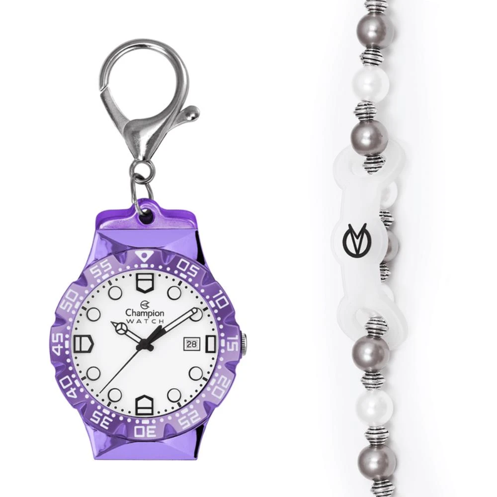 Relógio Champion Watch Troca Pulseiras com design esportivo e moderno, ideal para quem valoriza estilo e praticidade.O kit inclui 4 pulseiras e molduras intercambiáveis em diversas cores, além de cordão e gancho exclusivos.Com calendário e resistência à água, é perfeito para o dia a dia.Um relógio versátil, confortável e cheio de personalidade.Champion Watch: seu estilo muda com você.
